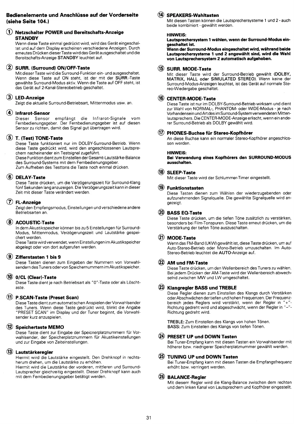 Marantz SR-73 - Bedienelemente und Anschlisse auf der Vorderseite (Siehe Seite 4.)