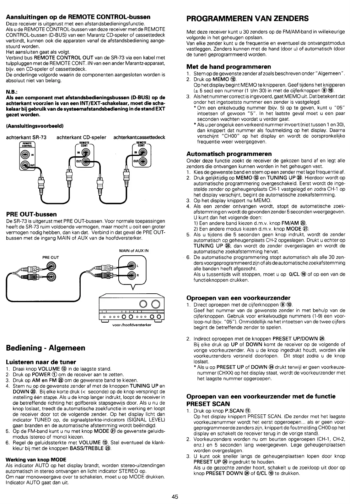 Marantz SR-73 - Aansluitingen Op de REMOTE CONTROL-Bussen; Pre Out-Dussemn; Bediening - Algemeen; Luisterem Maar de Turer