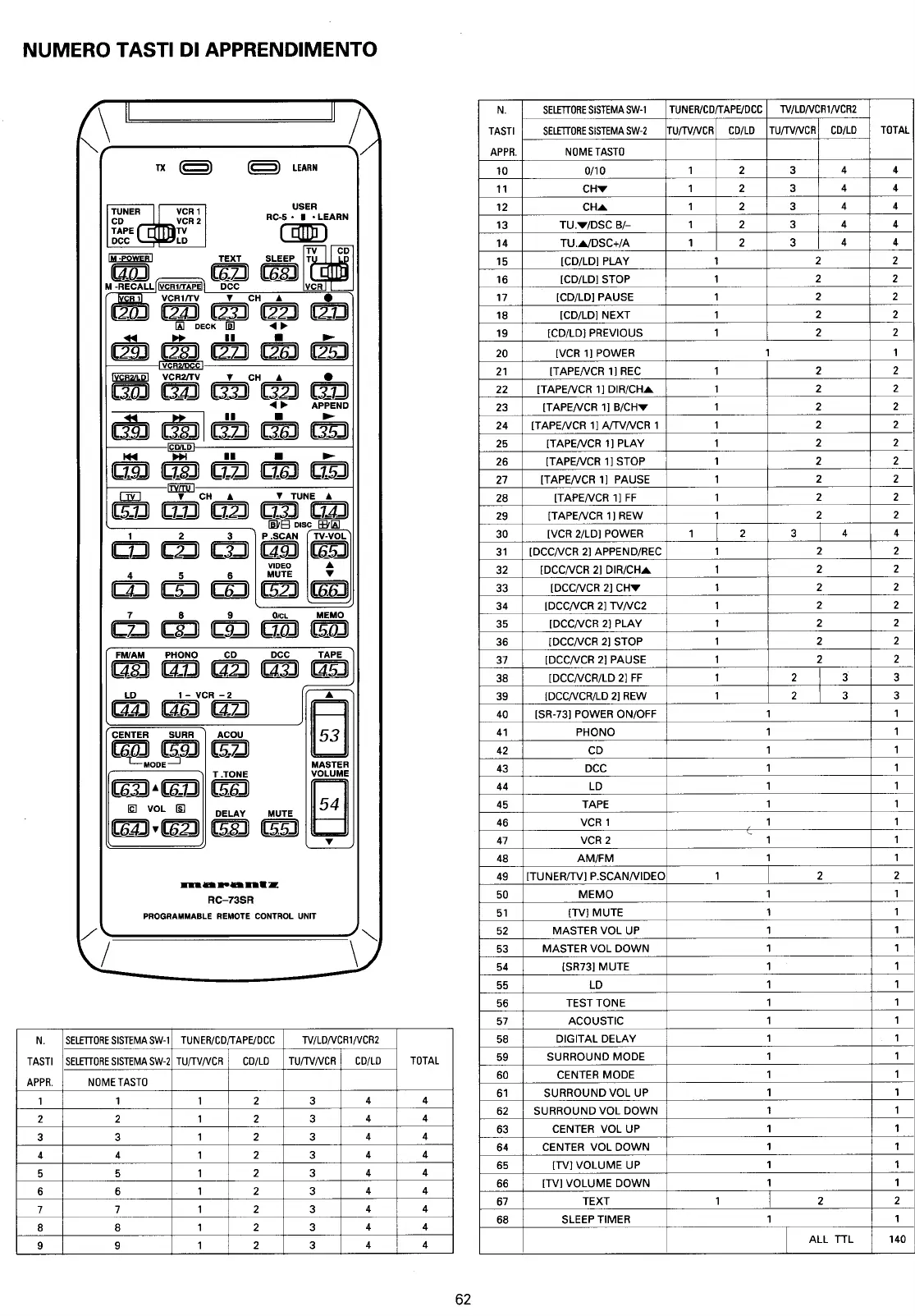 Marantz SR-73 - Numerotasti DI Apprendimentoo