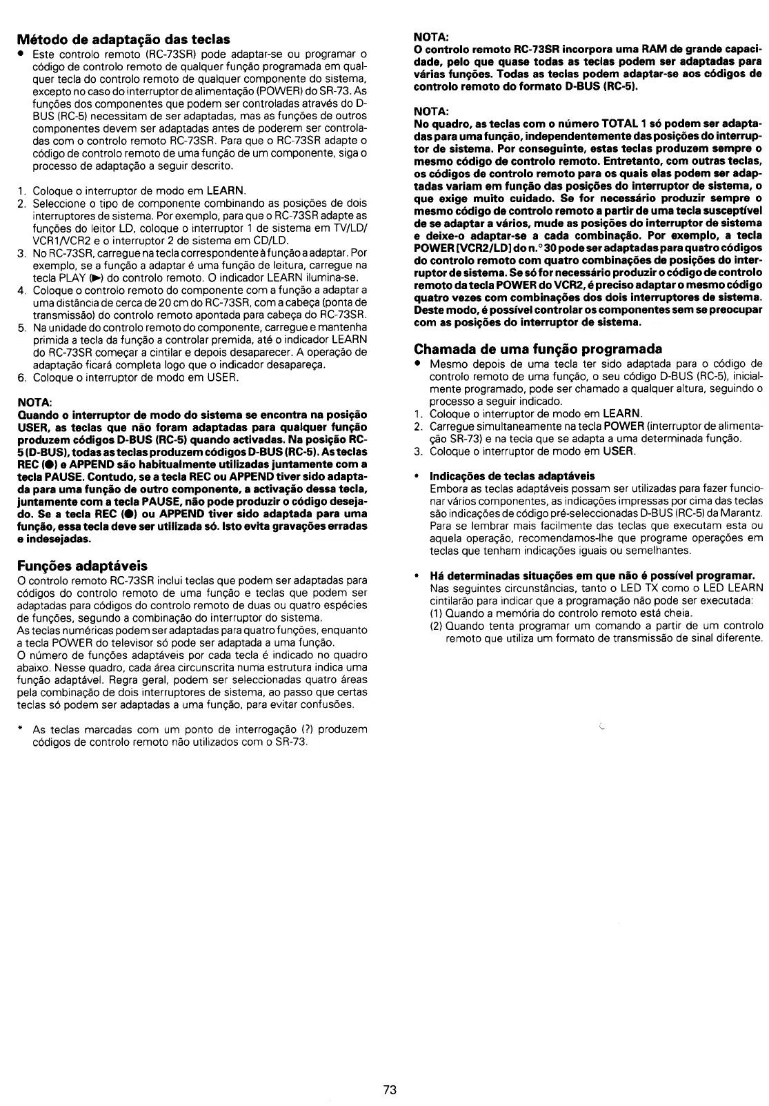 Marantz SR-73 - Método de Adaptacao das Teclas; Fungges Adaptavels; Chamada de Uma Funng4 O Programada