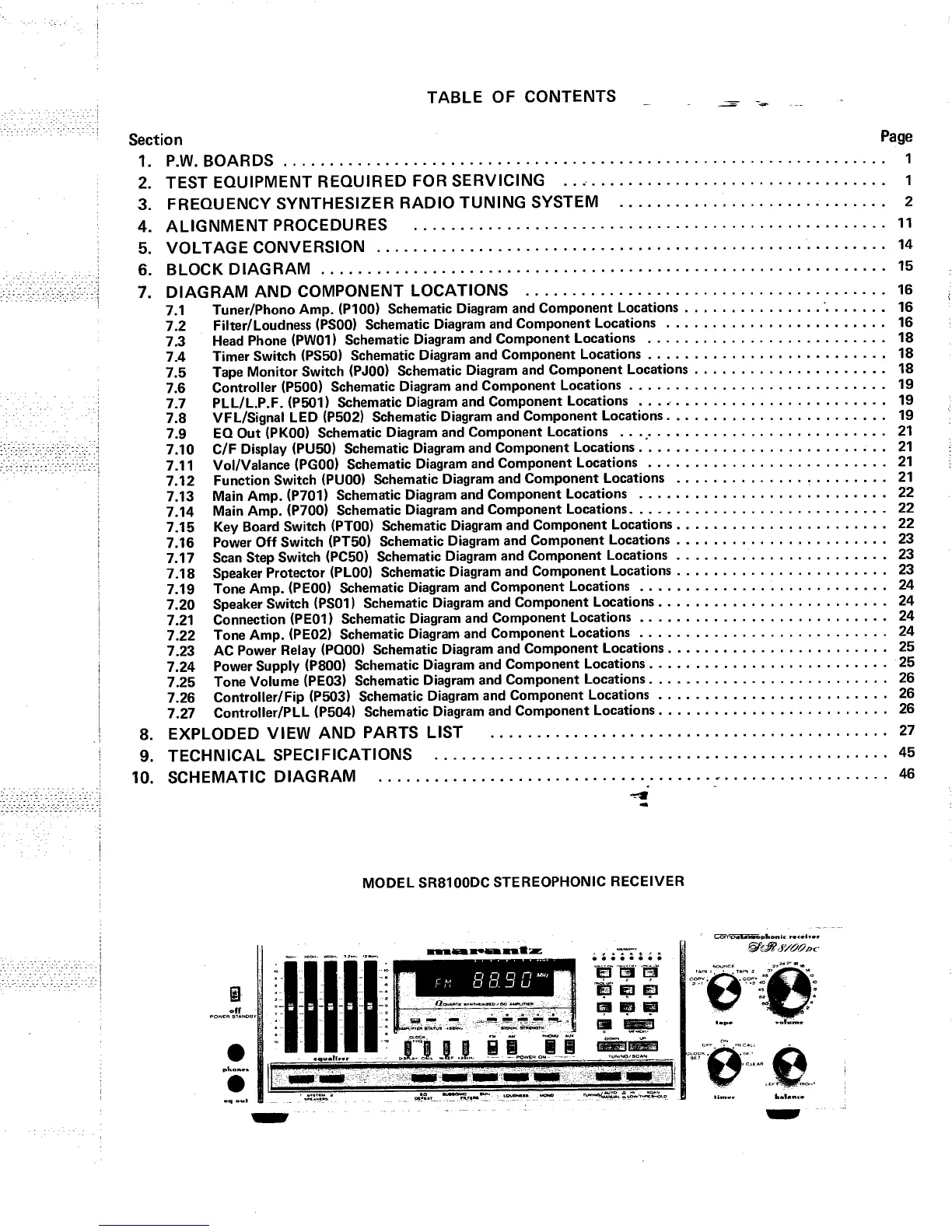 Marantz SR 8100DC - Table of Contents; Model SR8100 DC Stereophonic Receiver