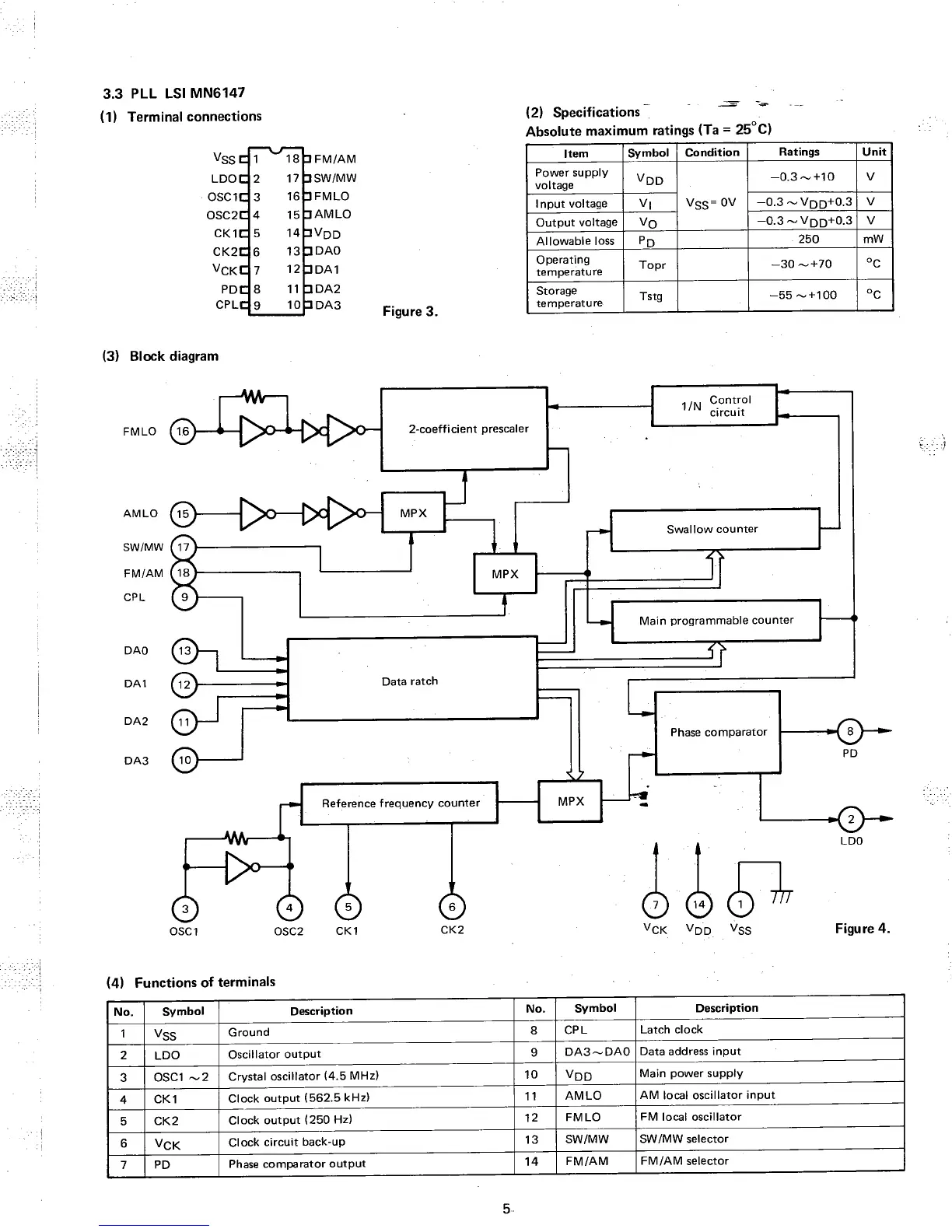 Marantz SR 8100DC - 3.3 PLL LSI MN6147; (1) Terminal connections; (2) Specifications; (3) Block diagram