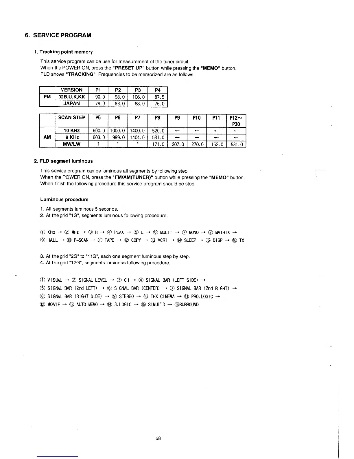 Marantz SR-96 - Service Program; Tracking Point Memory; FLD Segment Luminous