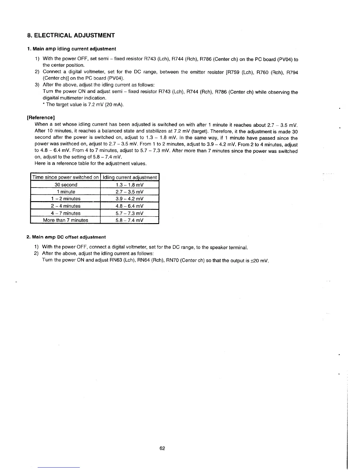 Marantz SR-96 - Electrical Adjustments; Main Amp Idling Current Adjustment; Main Amp DC Offset Adjustment