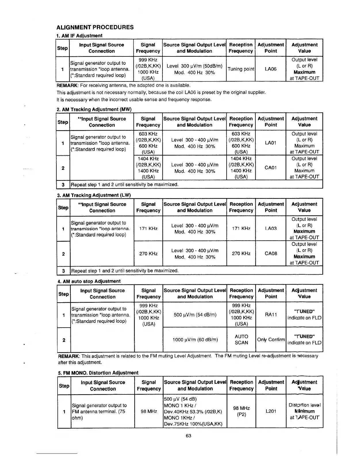 Marantz SR-96 - Alignment Procedures; AM IF Adjustment; AM Tracking Adjustment (MW); AM Tracking Adjustment (LW)