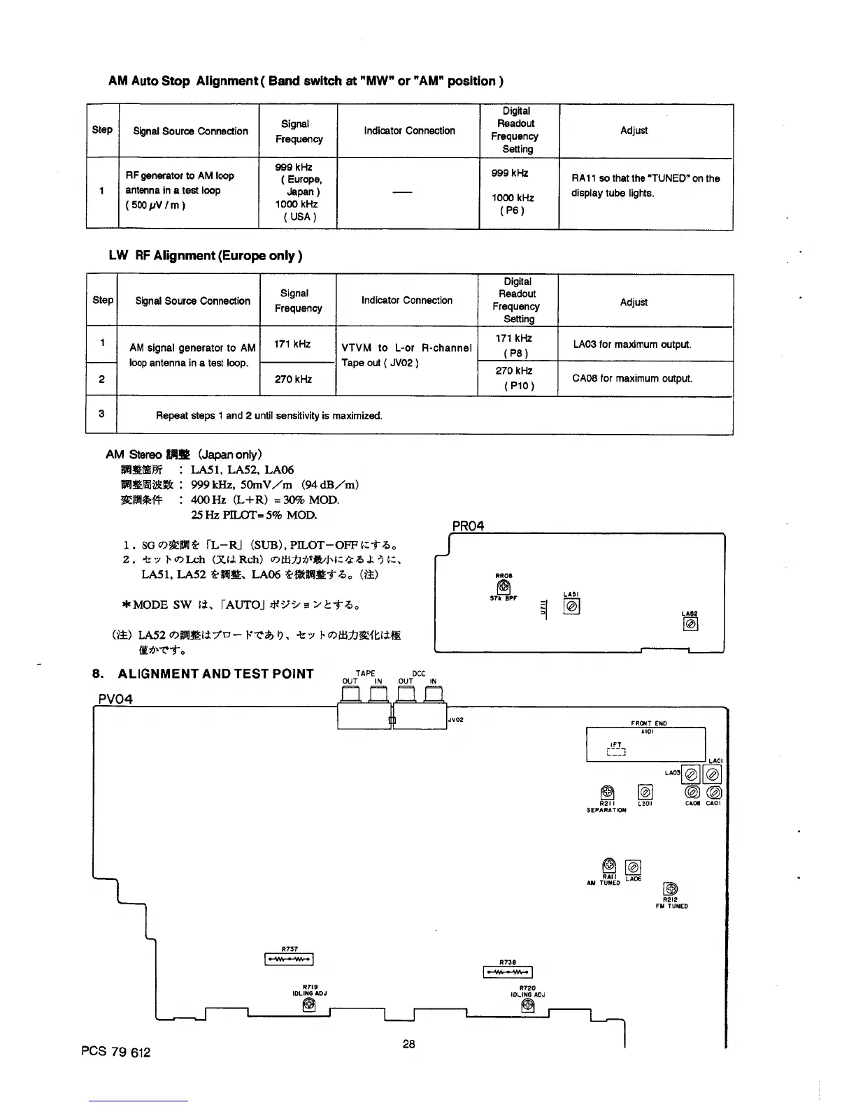 Marantz SR1030 - AM Auto Stop Alignment; LW RF Alignment; Alignment and Test Point