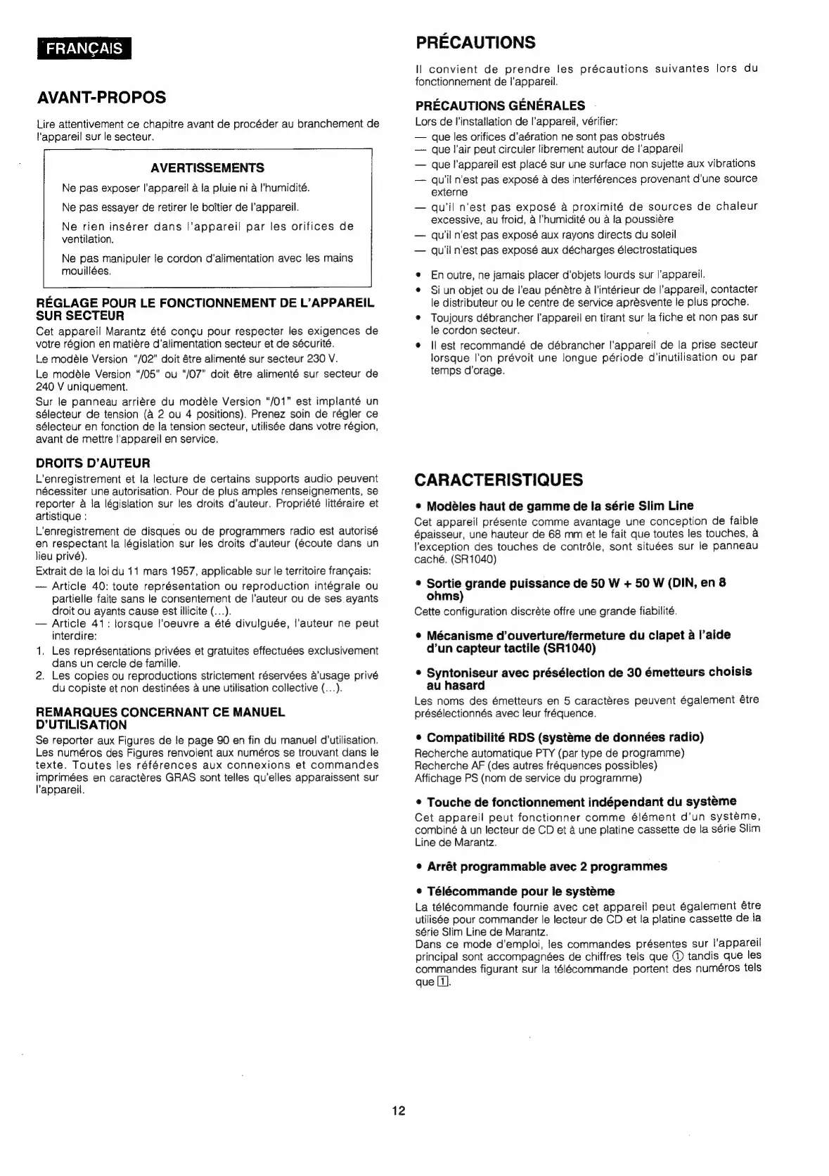 Marantz SR1030 - Avant-Propos
