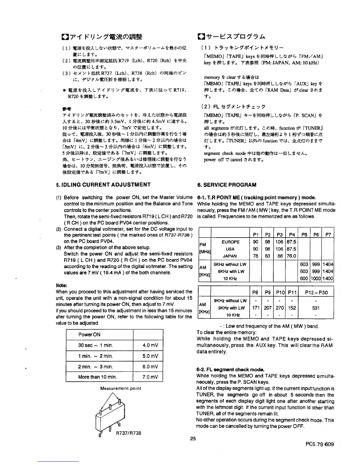 Marantz SR1040 - Service Programs and Adjustments; Idling Current Adjustment Procedure; T.R Point ME Mode Setup