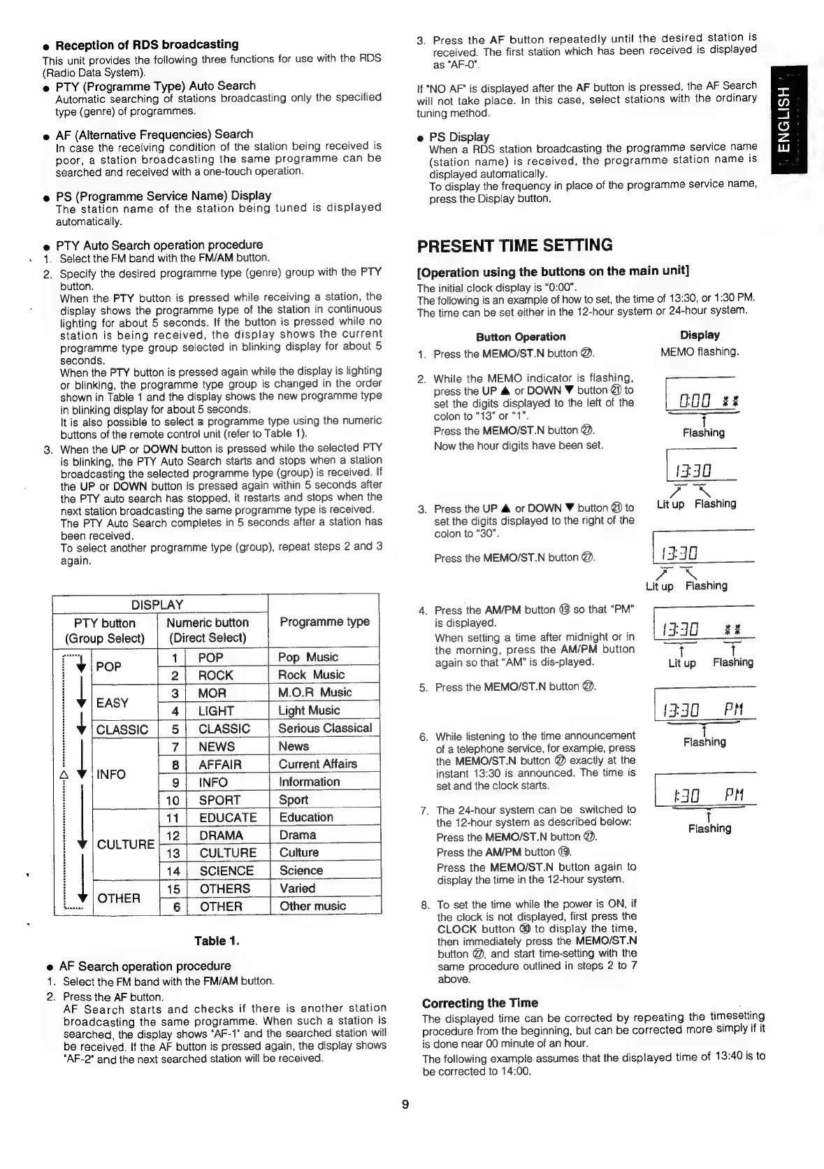 Marantz SR1041 - RDS RECEPTION AND TIME SETTING; RDS Broadcasting Features; PRESENT TIME SETTING