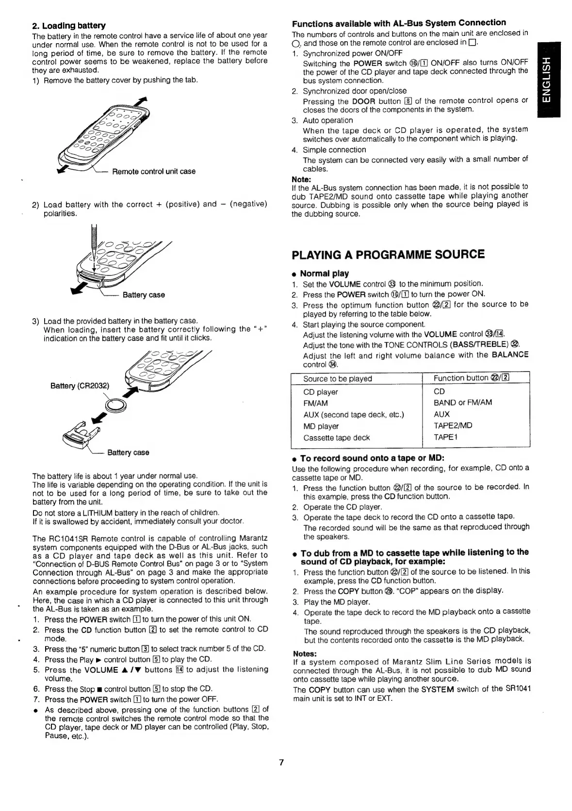 Marantz SR1041 - PLAYING A PROGRAMME SOURCE; Normal Playback; Recording and Dubbing
