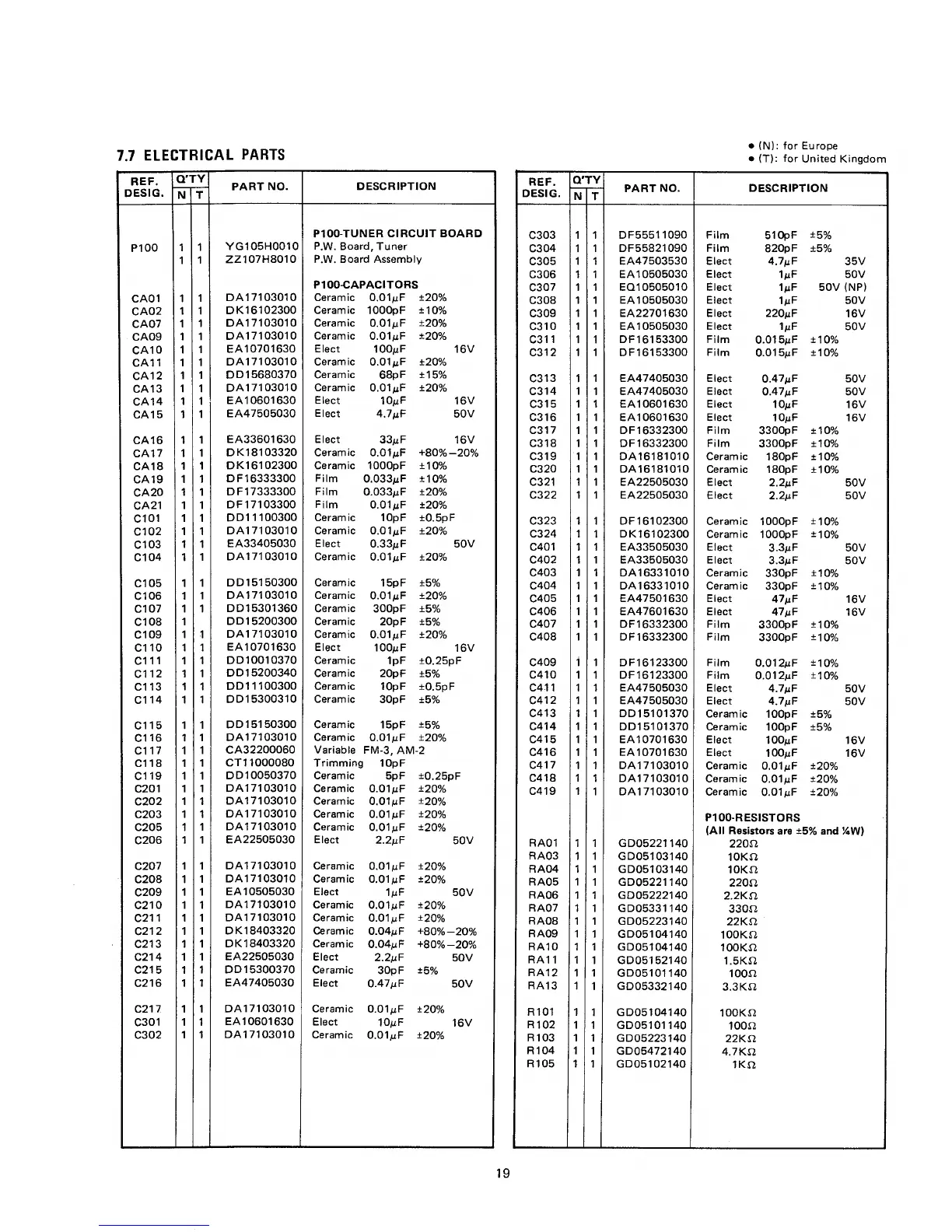 Marantz SR1100L - 7.7 ELECTRICAL PARTS