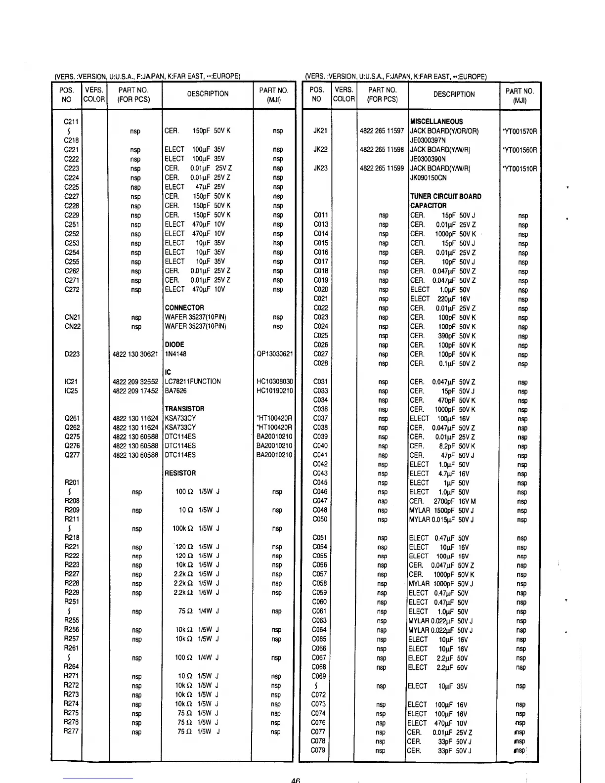 Marantz SR390 - Electrical Parts List - Connectors and ICs