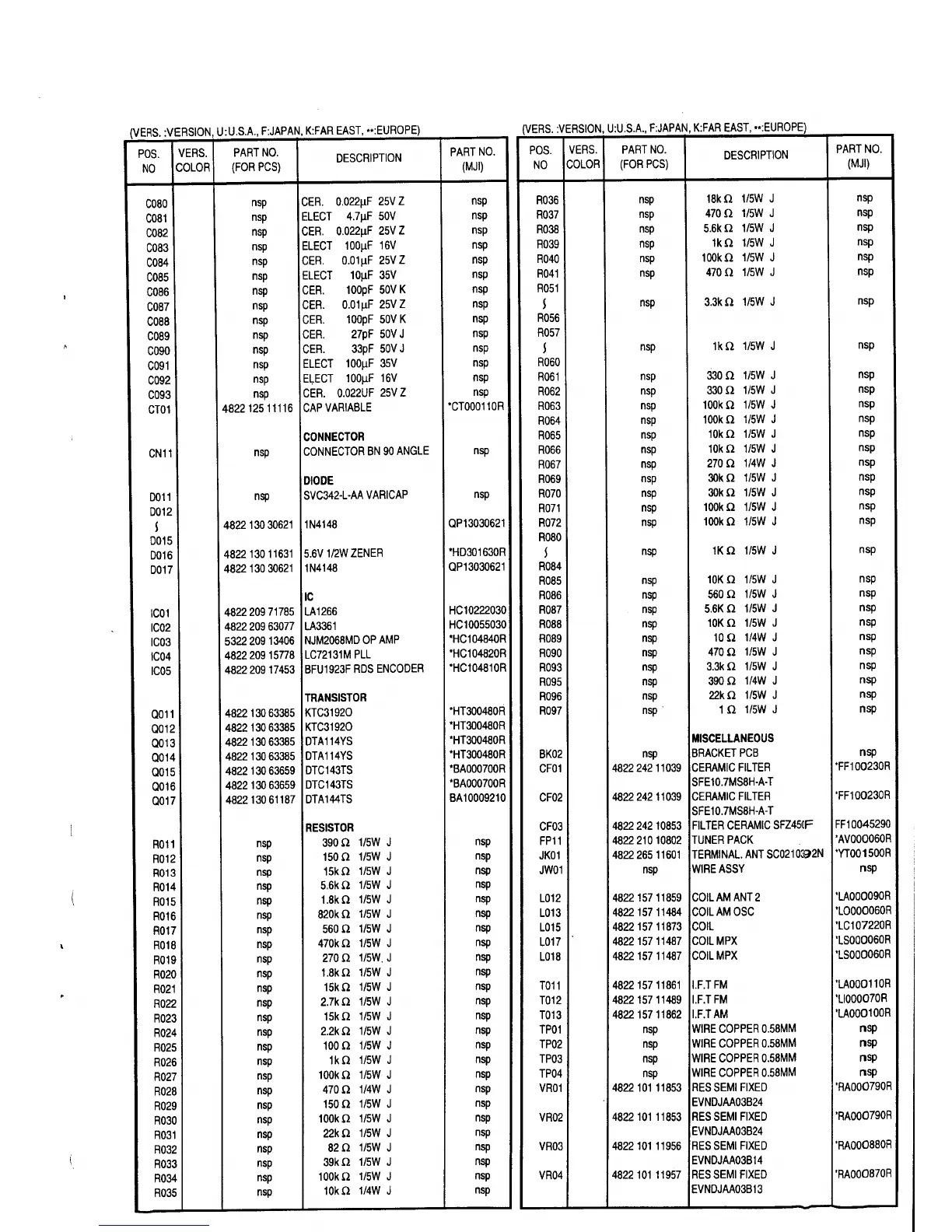 Marantz SR390 - Electrical Parts List - Final Components
