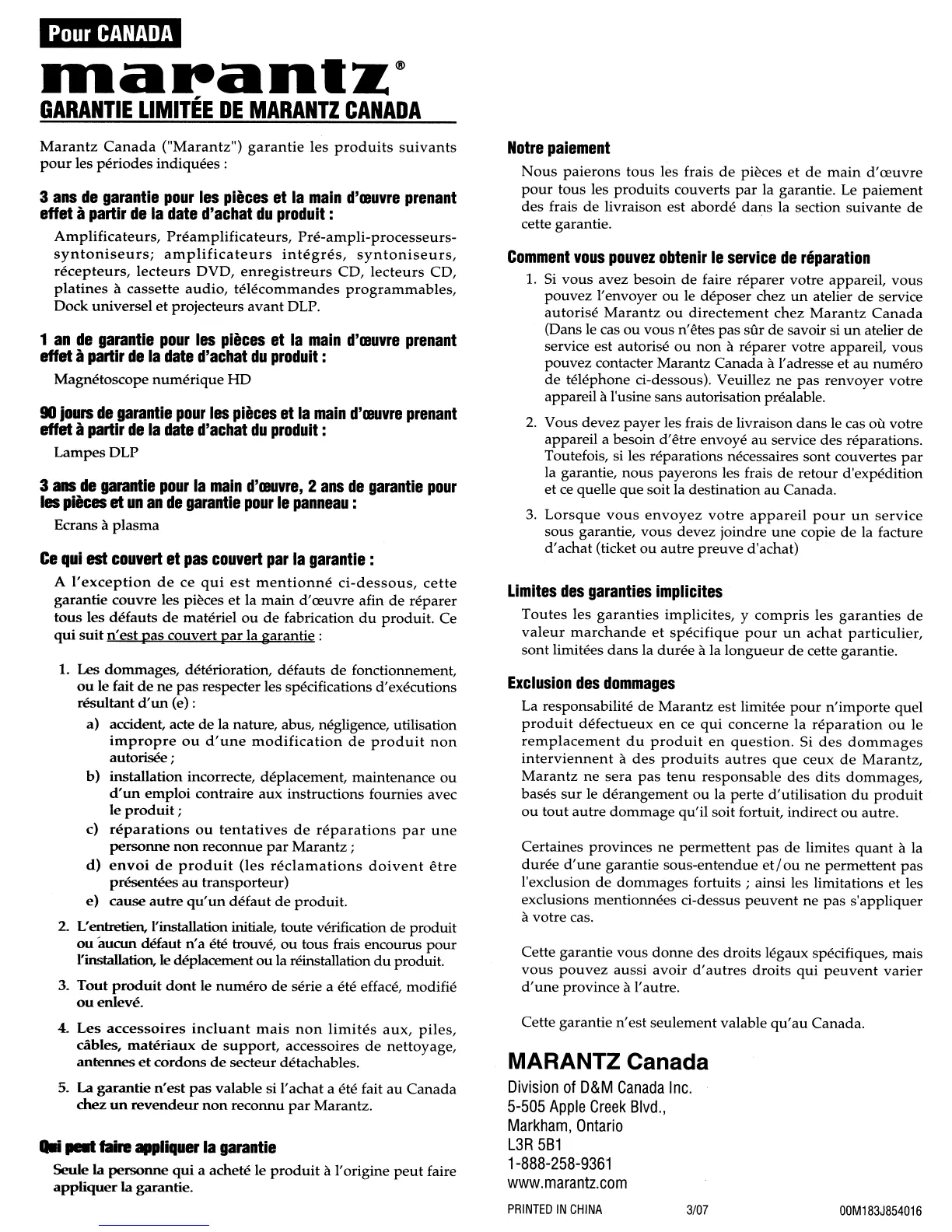 MARANTZ Canada