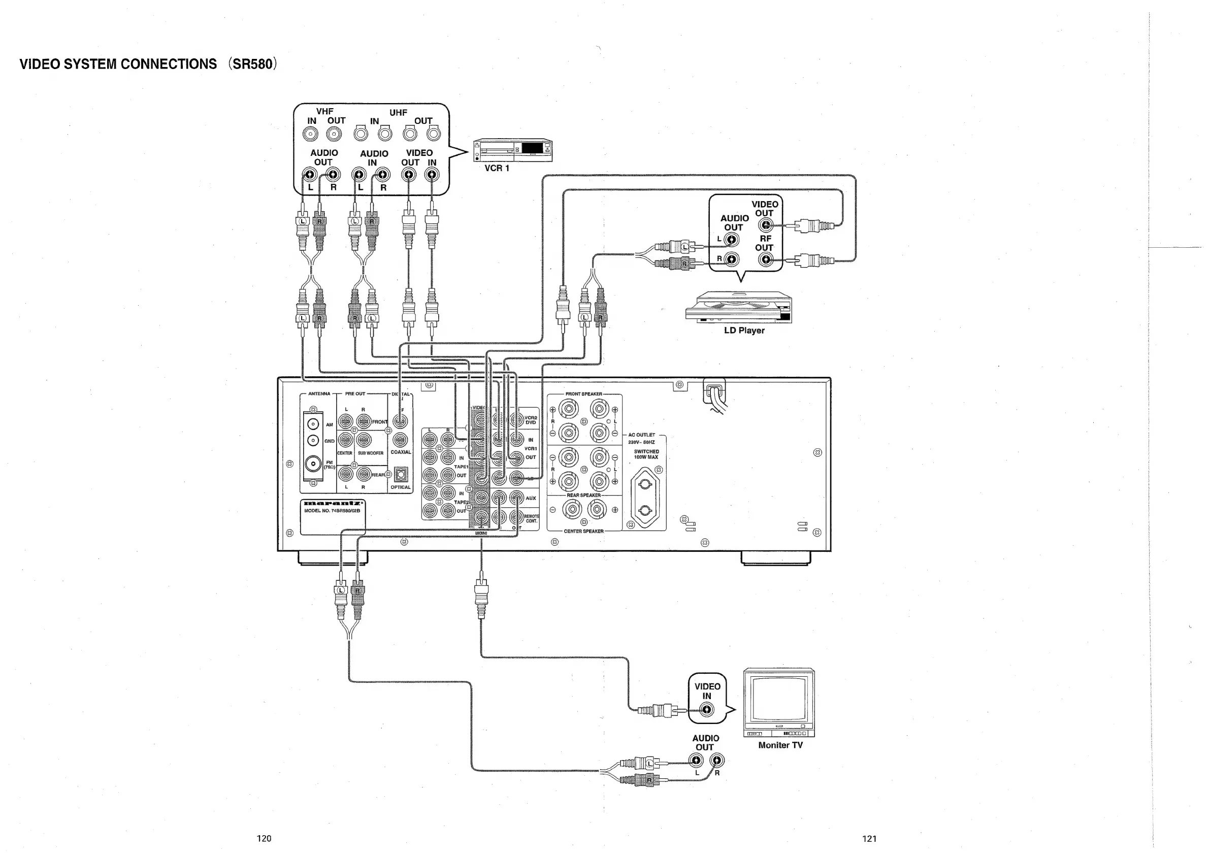 Marantz SR480 - VIDEO SYSTEM CONNECTIONS (SR580); VCR, LD PLAYER, AND MONITOR HOOKUPS