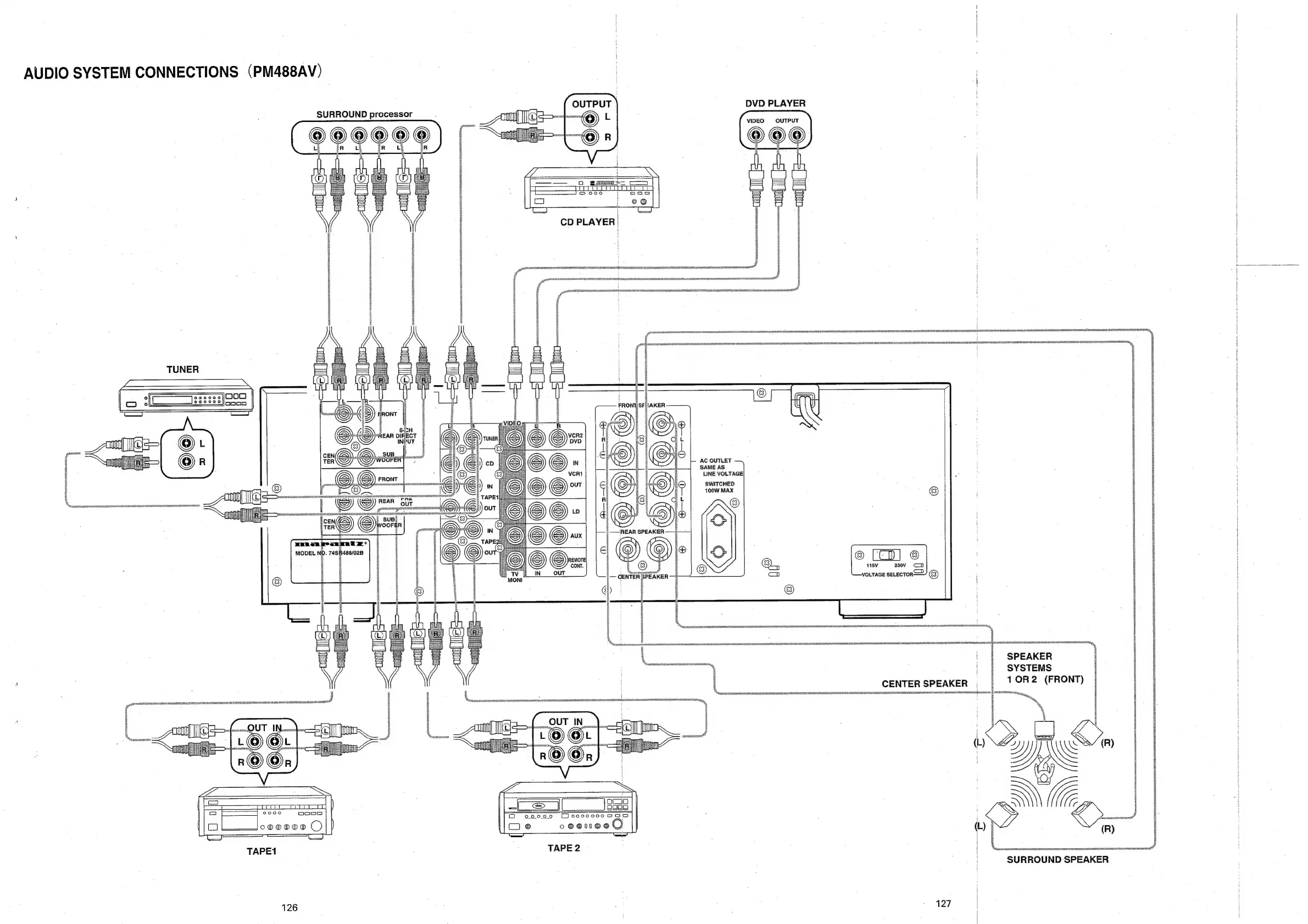 Marantz SR480 - AUDIO SYSTEM CONNECTIONS (PM488 AV); ANTENNAS, PLAYERS, AND SPEAKER HOOKUPS