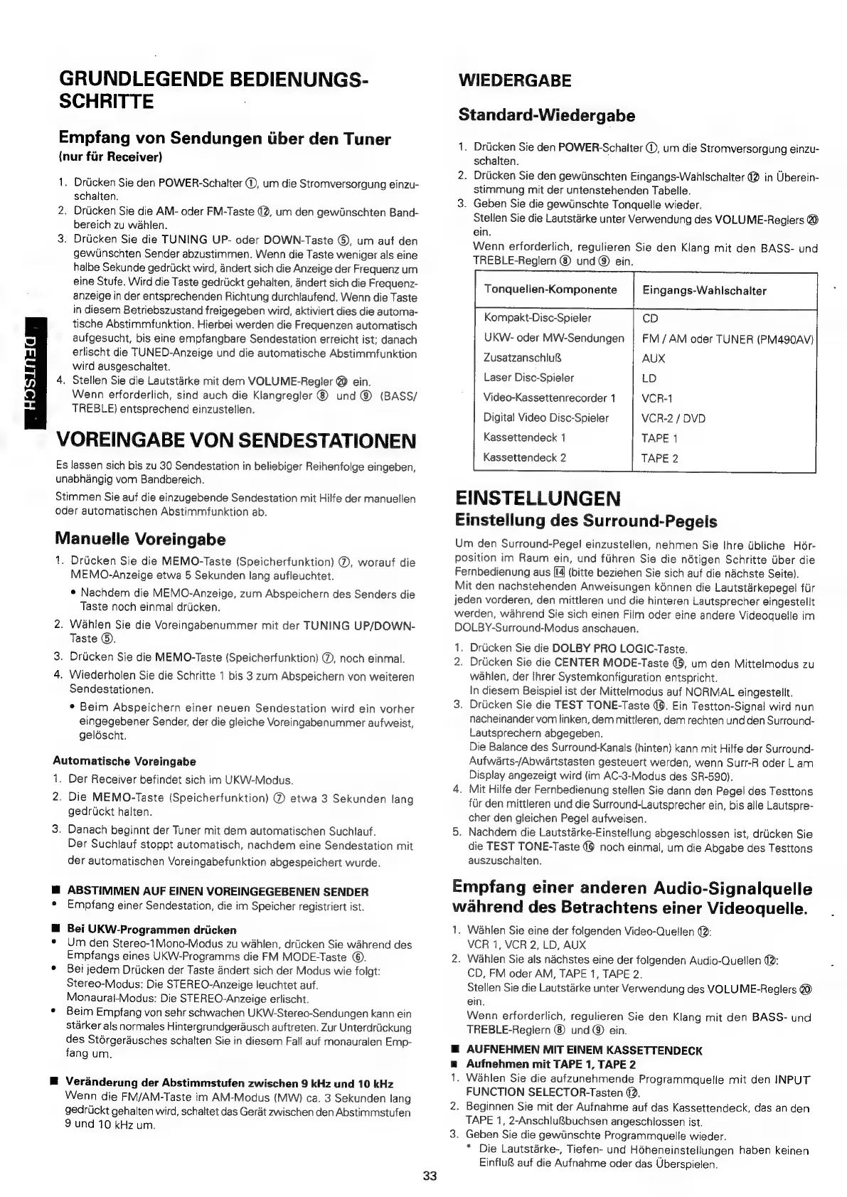 Marantz SR490 - Grundlegende Bedienungs- Schritte; Voreingabe von Sendestationen