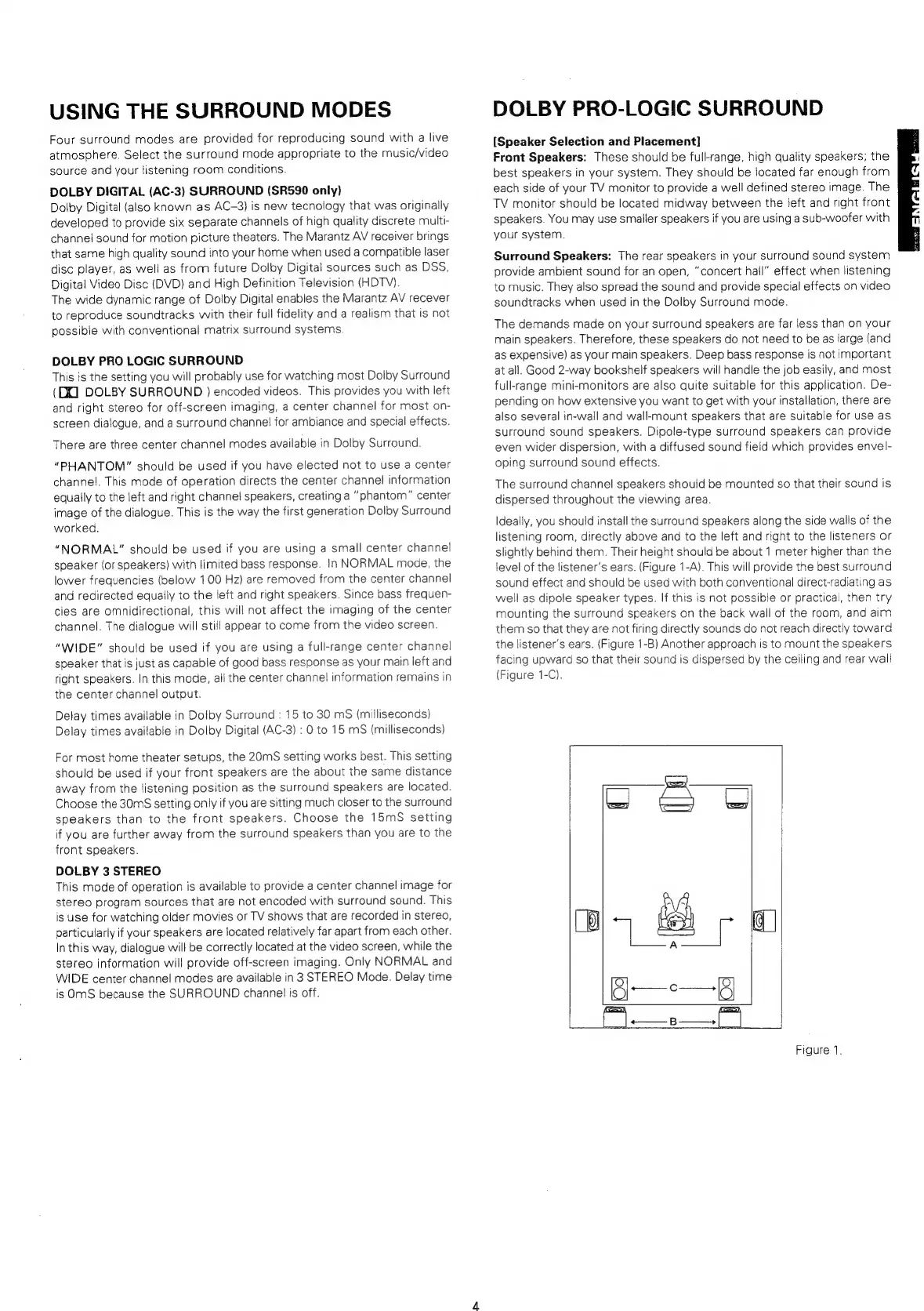 Marantz SR490 - Using the Surround Modes; Dolby Pro-Logic Surround