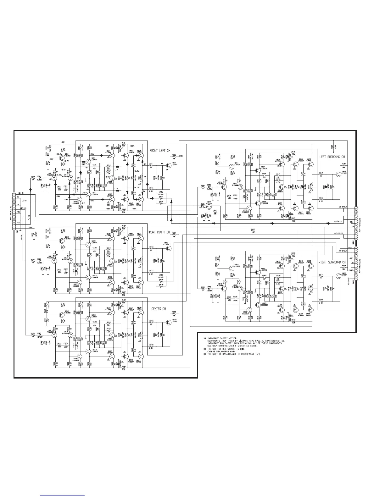 Marantz SR5000/N1B - Power Amplifier Schematics; Front and Center Channel Amplifiers; Surround Channel Amplifiers