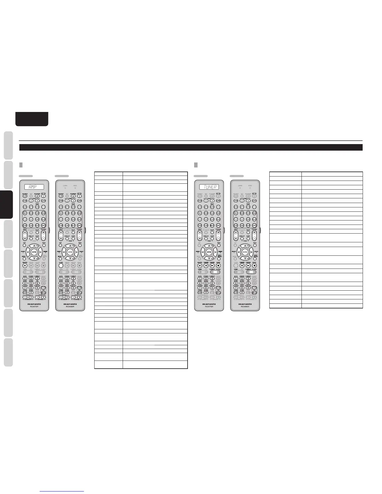 To control the unit by your remote controller, you have to select the device AMP or TUNER by pressing the SOURCE button. Please refer below for the details in AMP or TUNER mode.