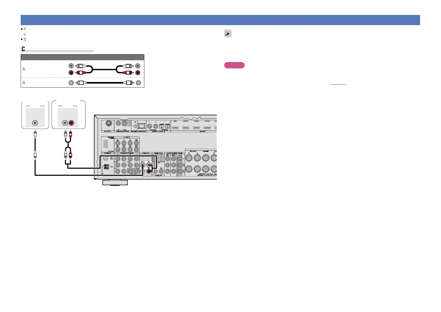 •When external power amplifier have been connected to PRE OUT terminals, do not connect the speakers