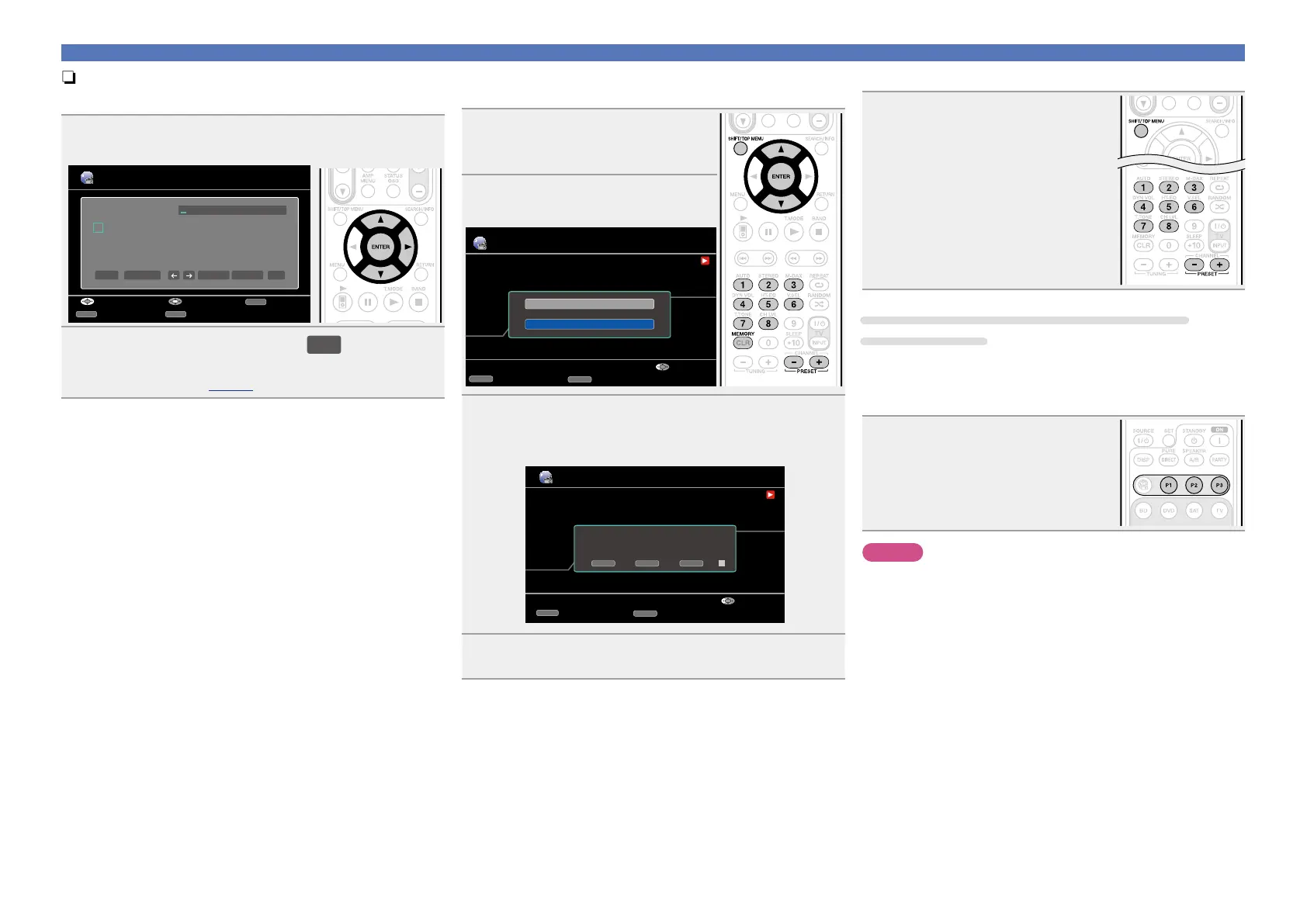 •Up to three Internet radio stations can be registered to the P1 – P3