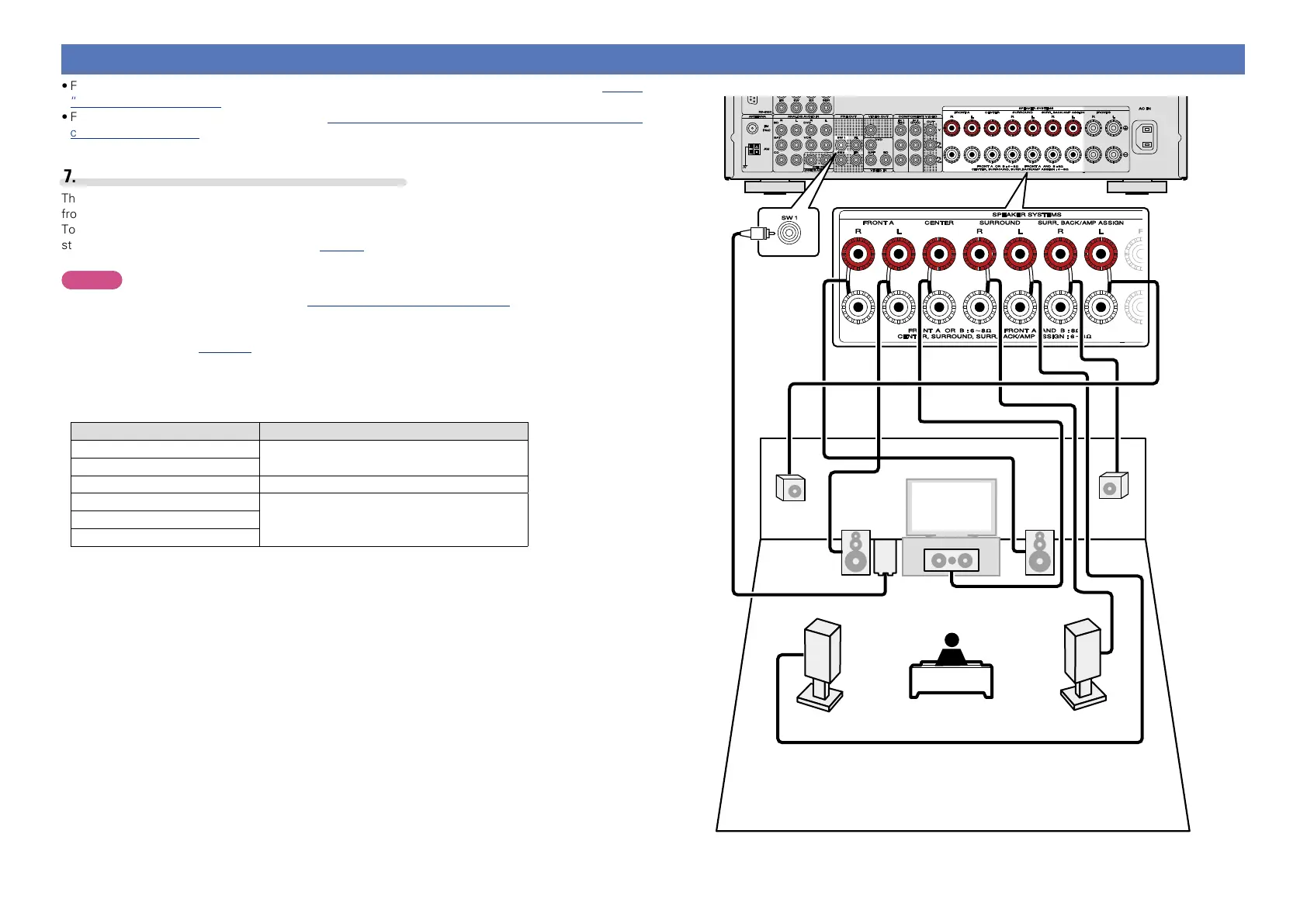 •For the method of connecting 7.1-channel system with surround back speakers, see C page 6