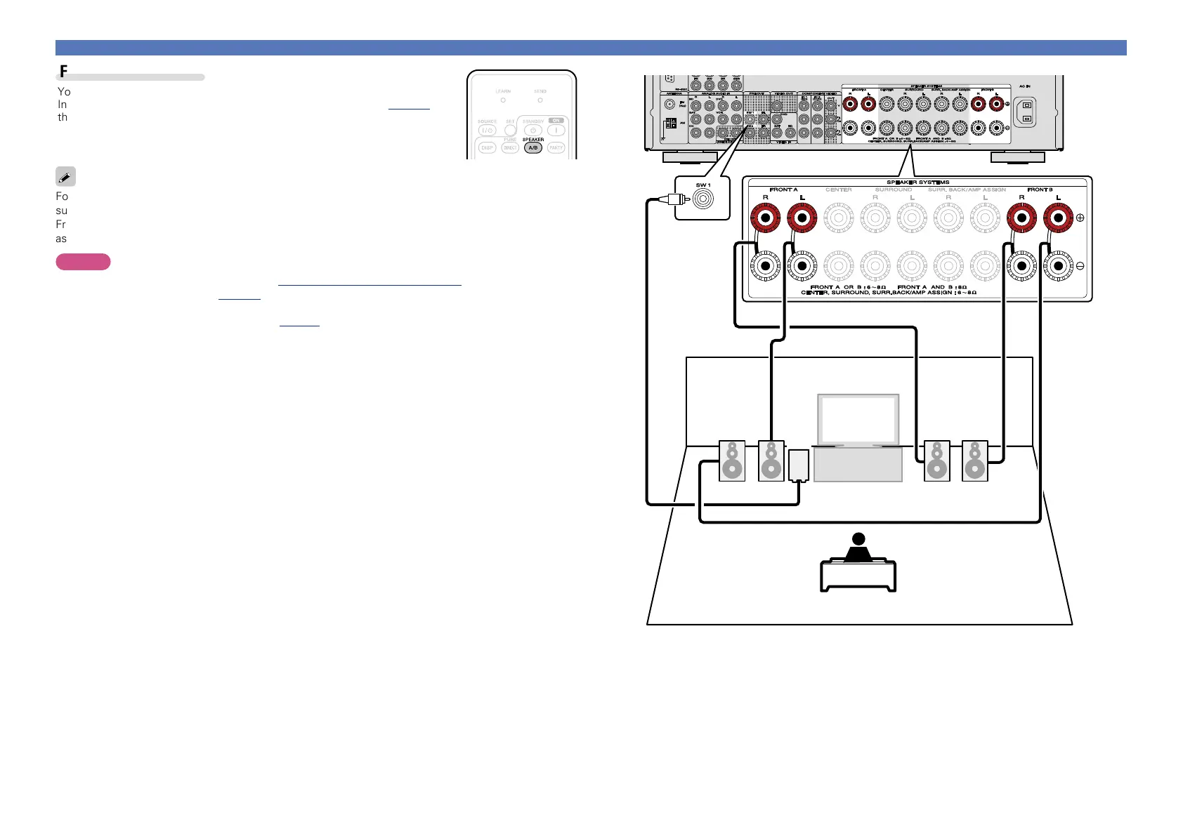 •When using the A front speakers and B front speakers simultaneously, make sure you check the