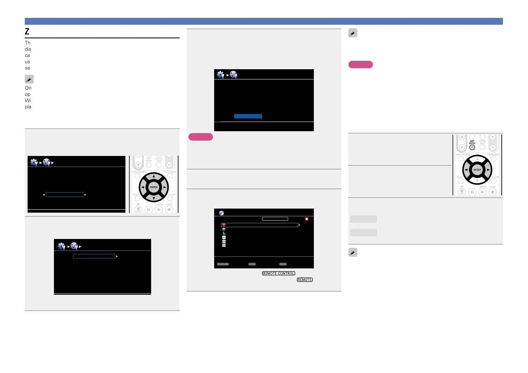 With the Zone Management function, the network menu screen and