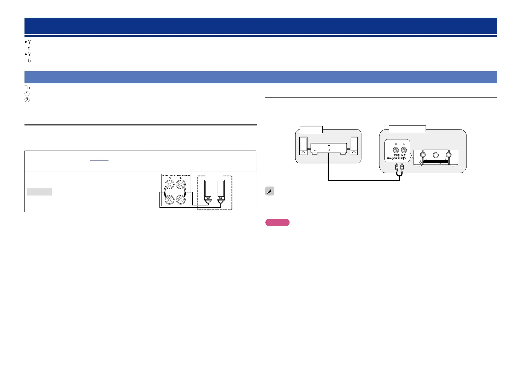 The ZONE2 audio signals are output from this unit’s SURR.BACK/AMP ASSIGN speaker terminals using