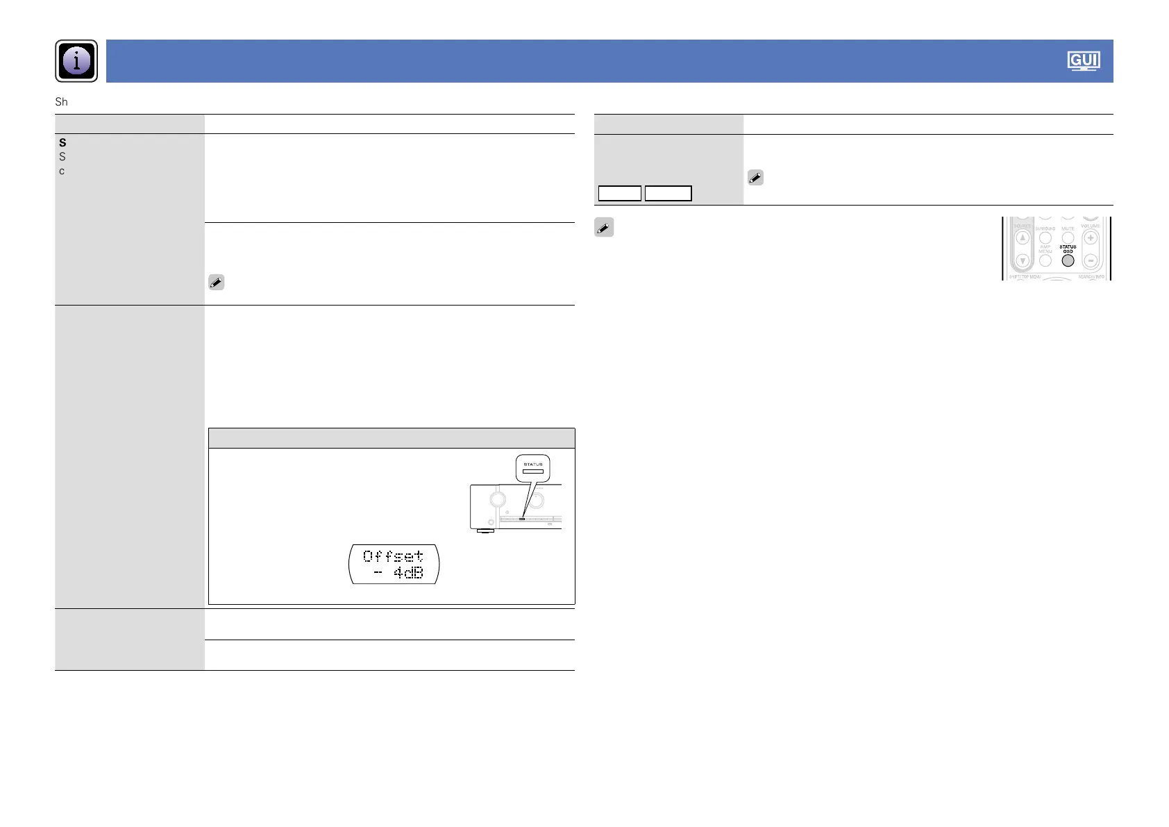 Show information about receiver settings, input signals, etc.