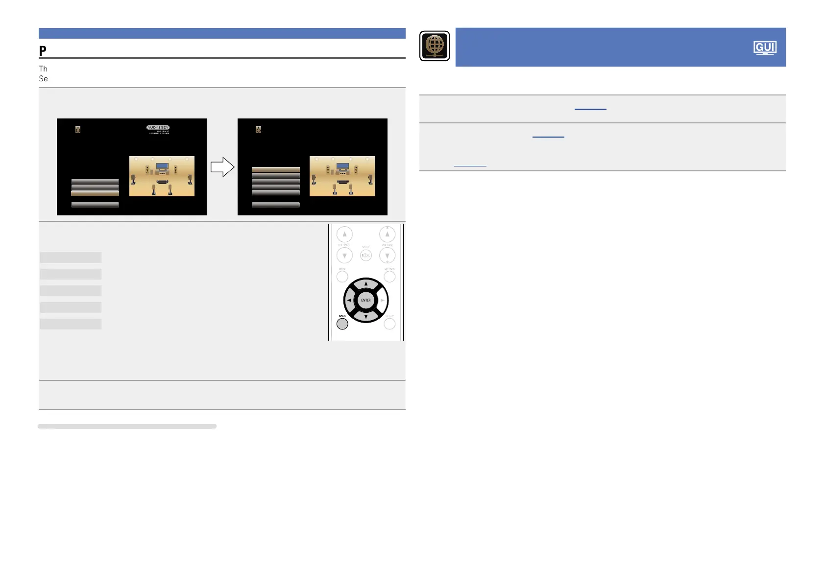 ui to select equalizing curve (“Audyssey” or “Audyssey Flat”) to