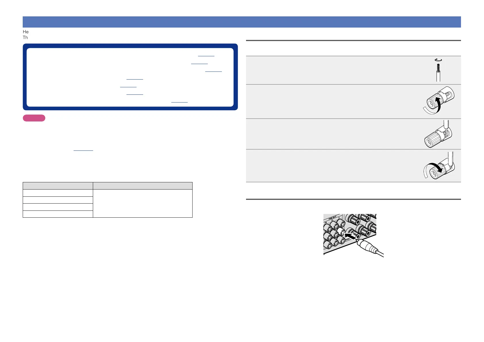 •Connect so that the speaker cable core wires do not protrude from the speaker terminal. The