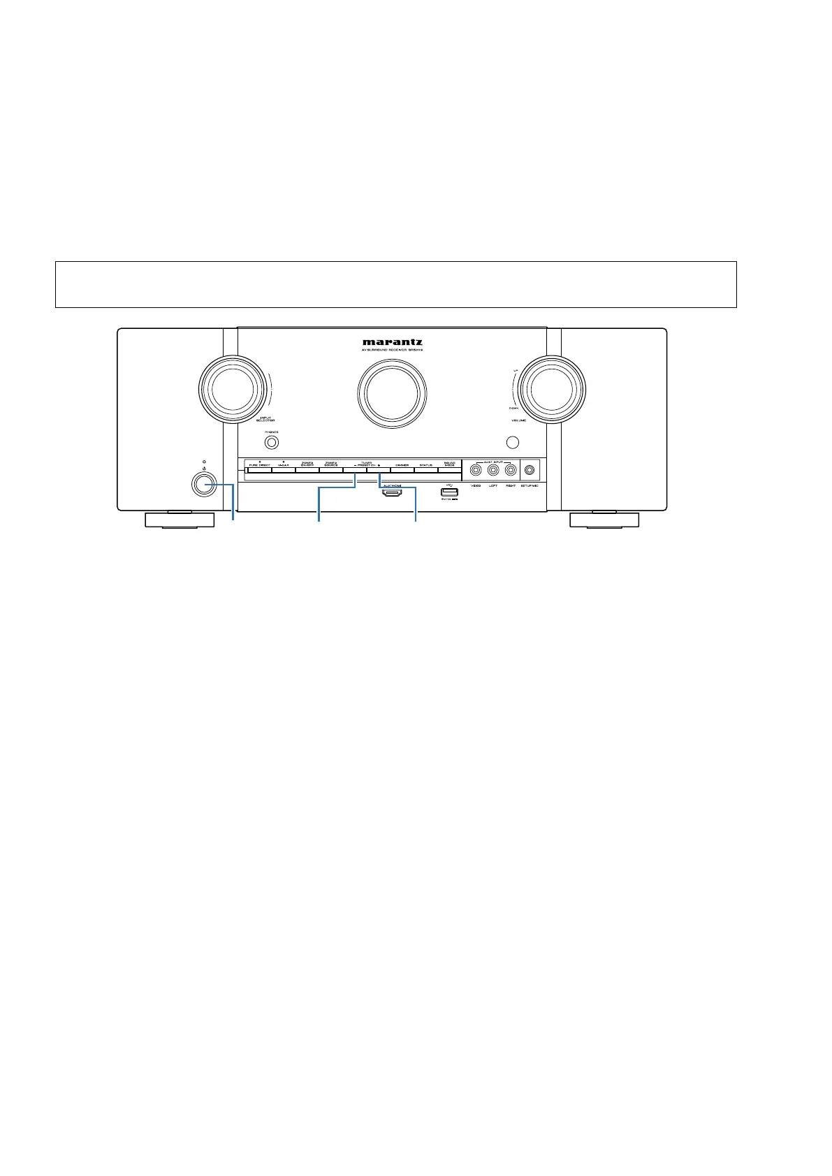 2. Hold down buttons "TUNER PRESET CH -" and "TUNER PRESET CH +" at the same time and press the power but-