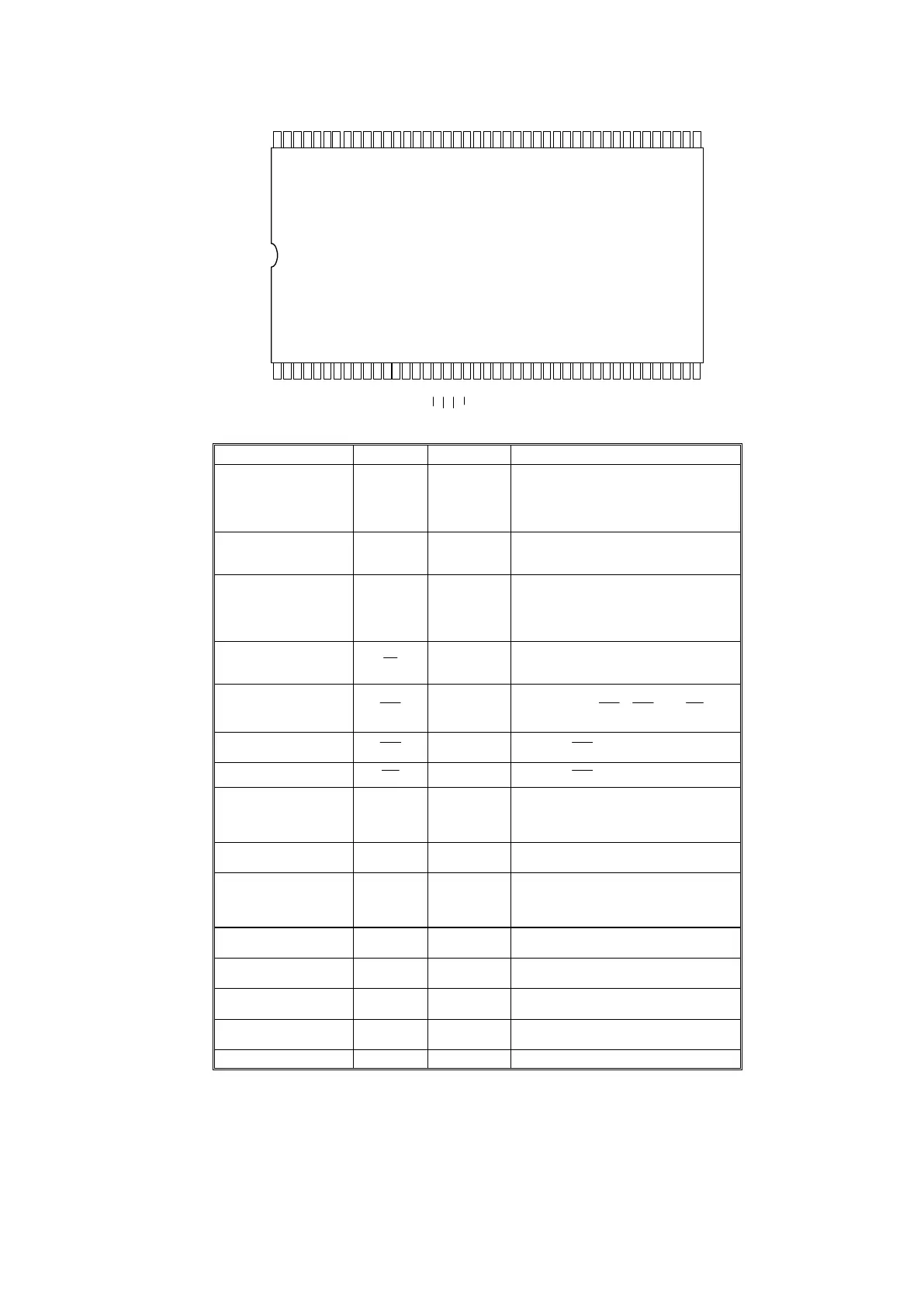 Multiplexed pins for row and column address.