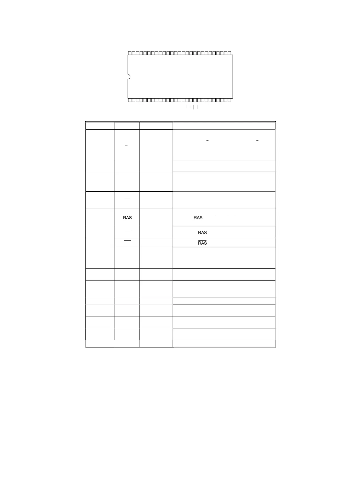 Multiplexed pins for row and column address.