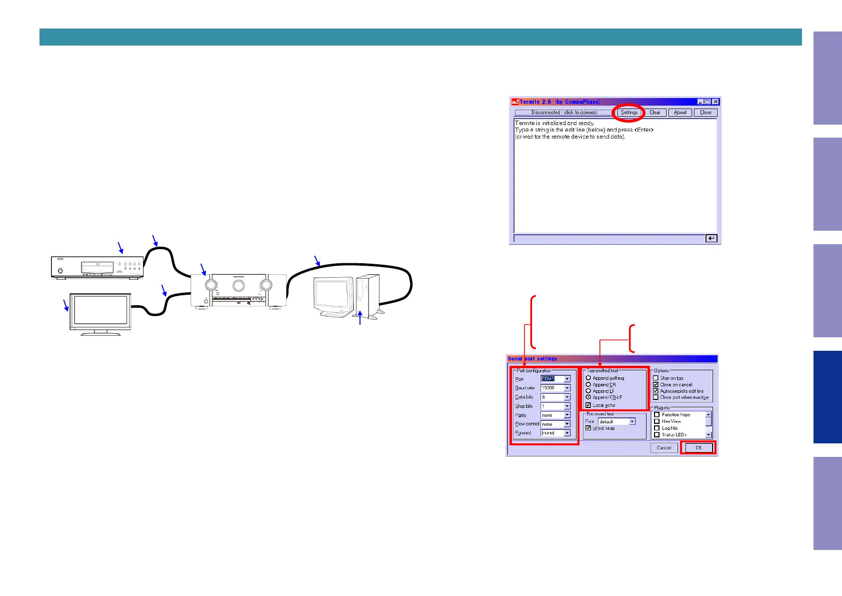 PC settings : Execute the serial communication program, Termite.exe.
