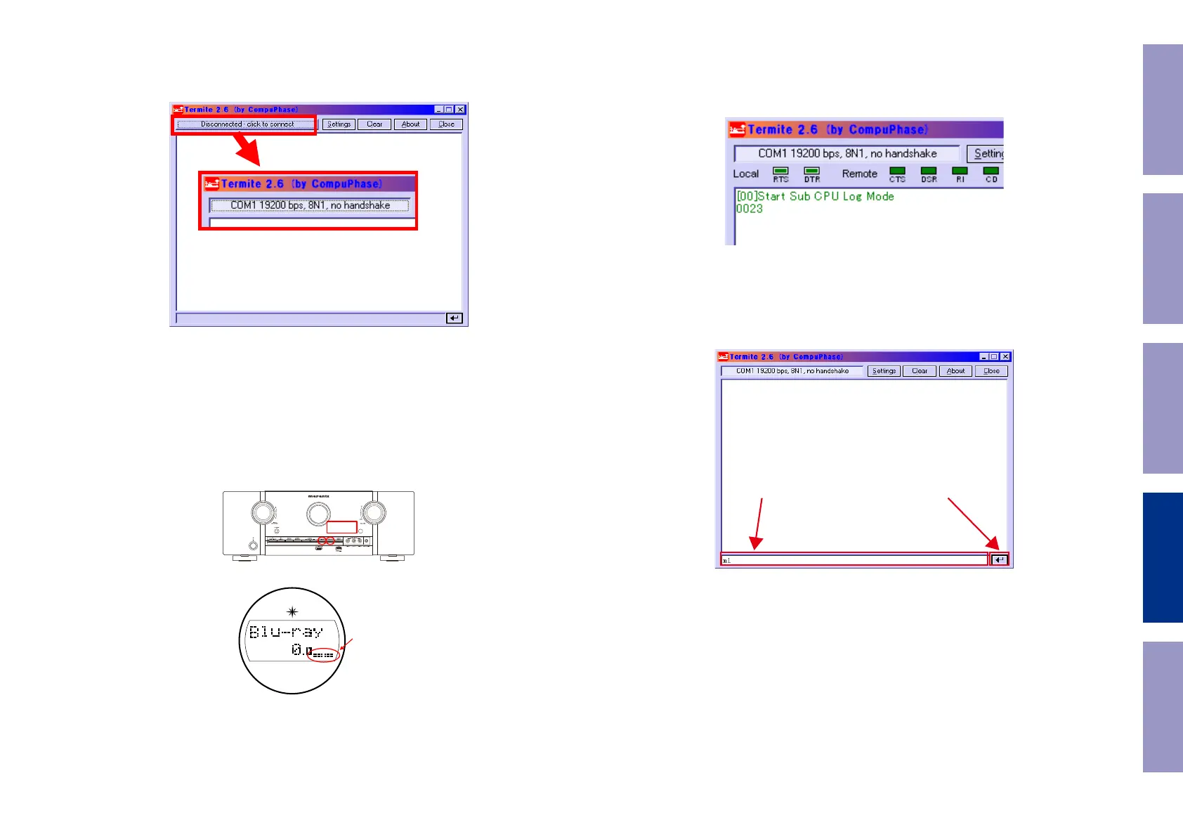 AVR settings : While the power is On, hold down buttons "DIMMER" and "STATUS" for at