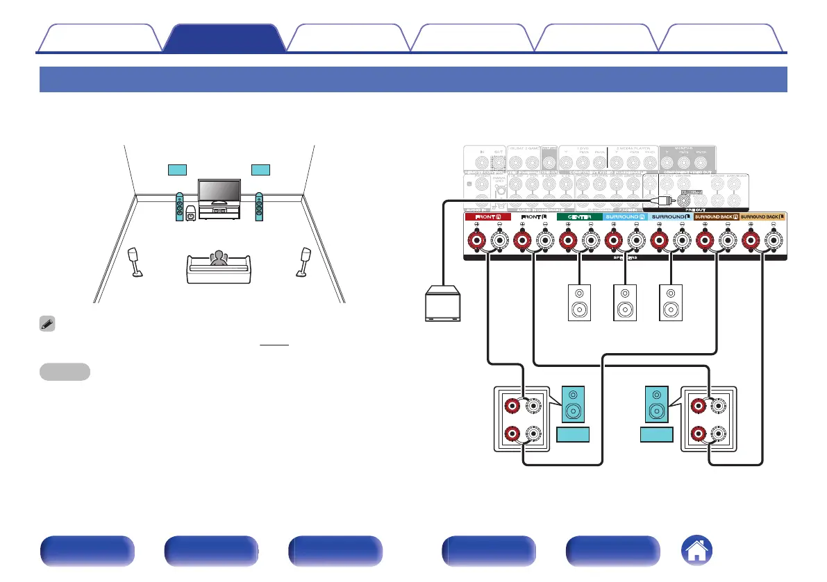 This system plays back 5.1-channels. You can use the bi-amp connection for front speakers. Bi-amp connection is a method to connect separate