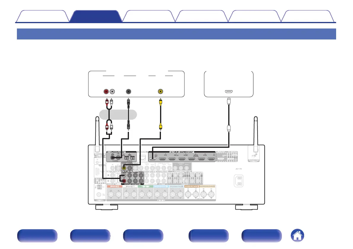 This explanation uses the connection with a satellite tuner/cable TV STB as an example.