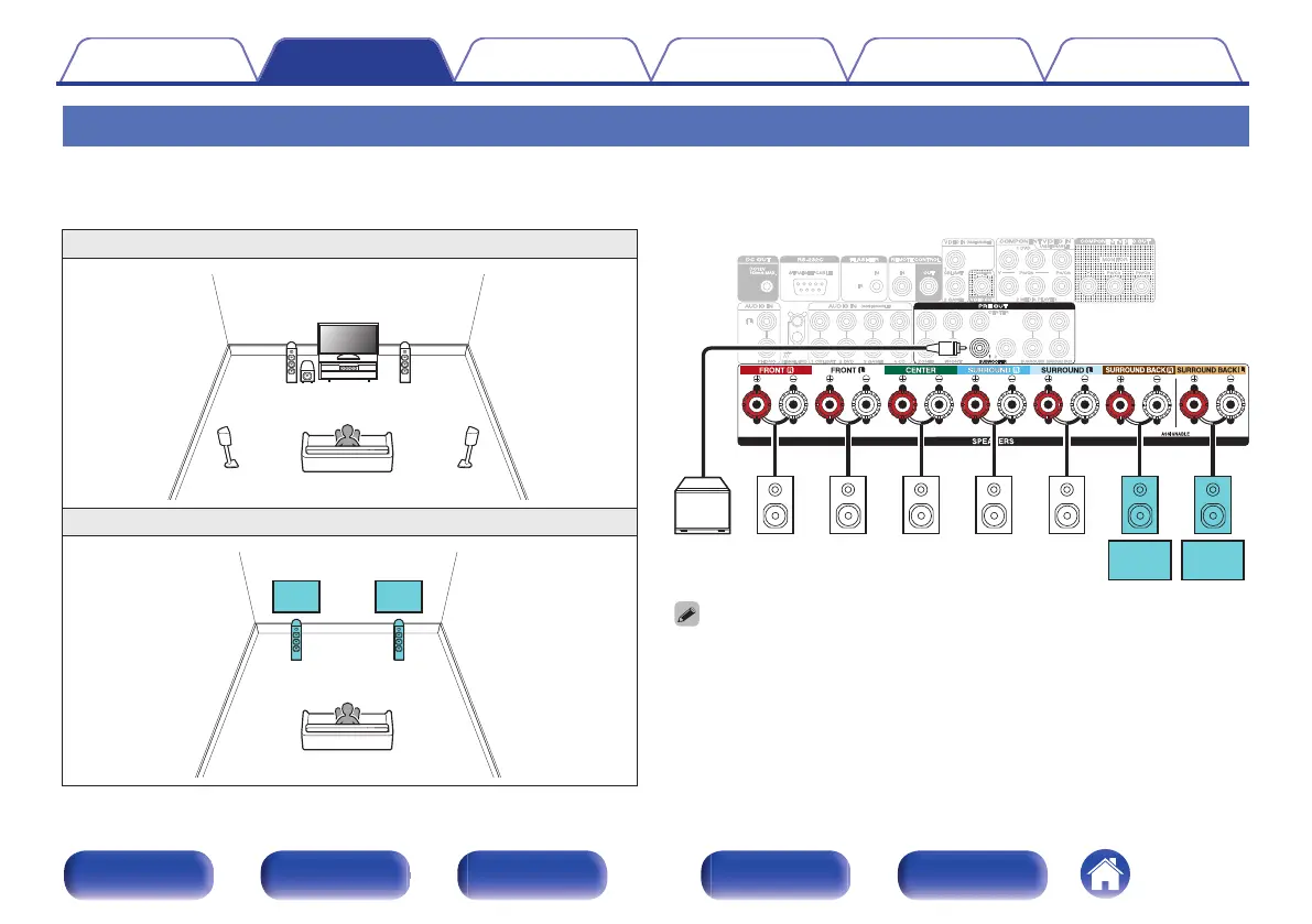 5.1-channel (MAIN ZONE) + 2-channel (ZONE2) speaker connection