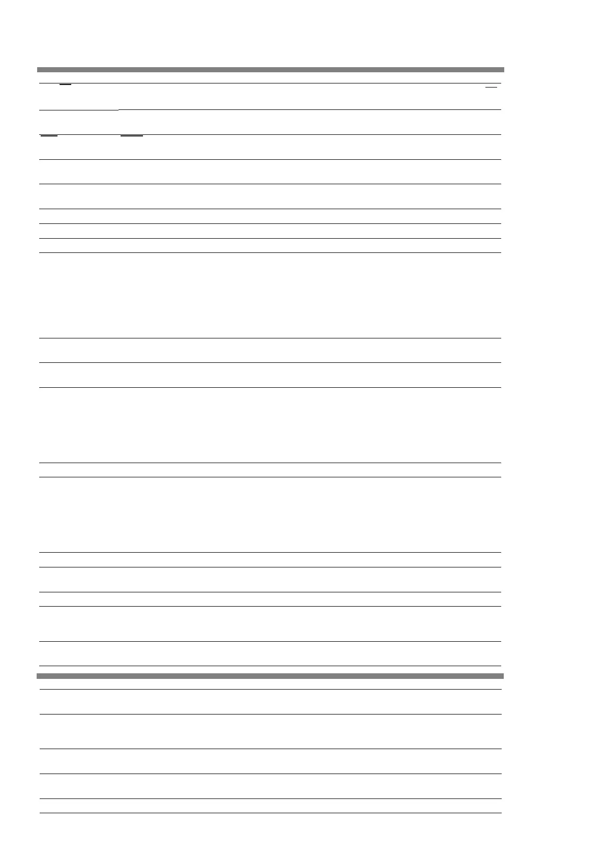 Analog Characteristics specification table.