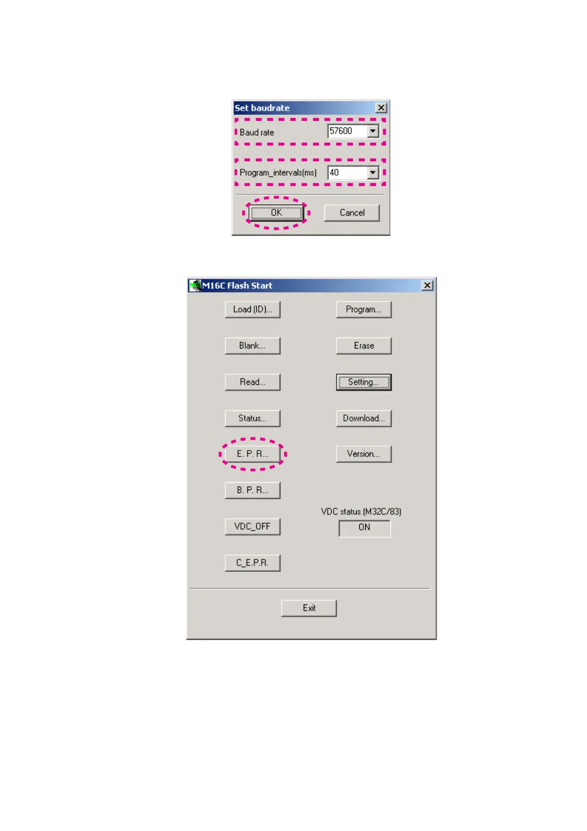 Baud rateから16. 57600を選択します。