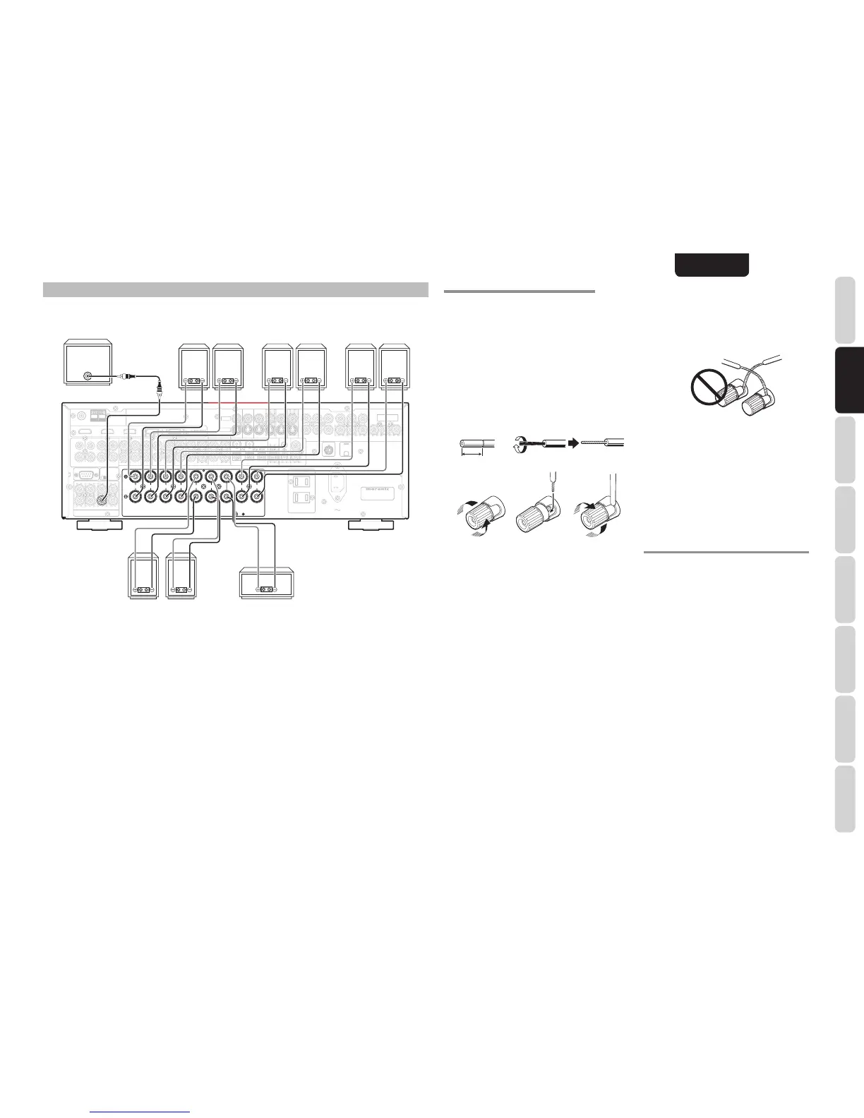 • Ne raccordez pas plus d’un câble d’enceinte à une