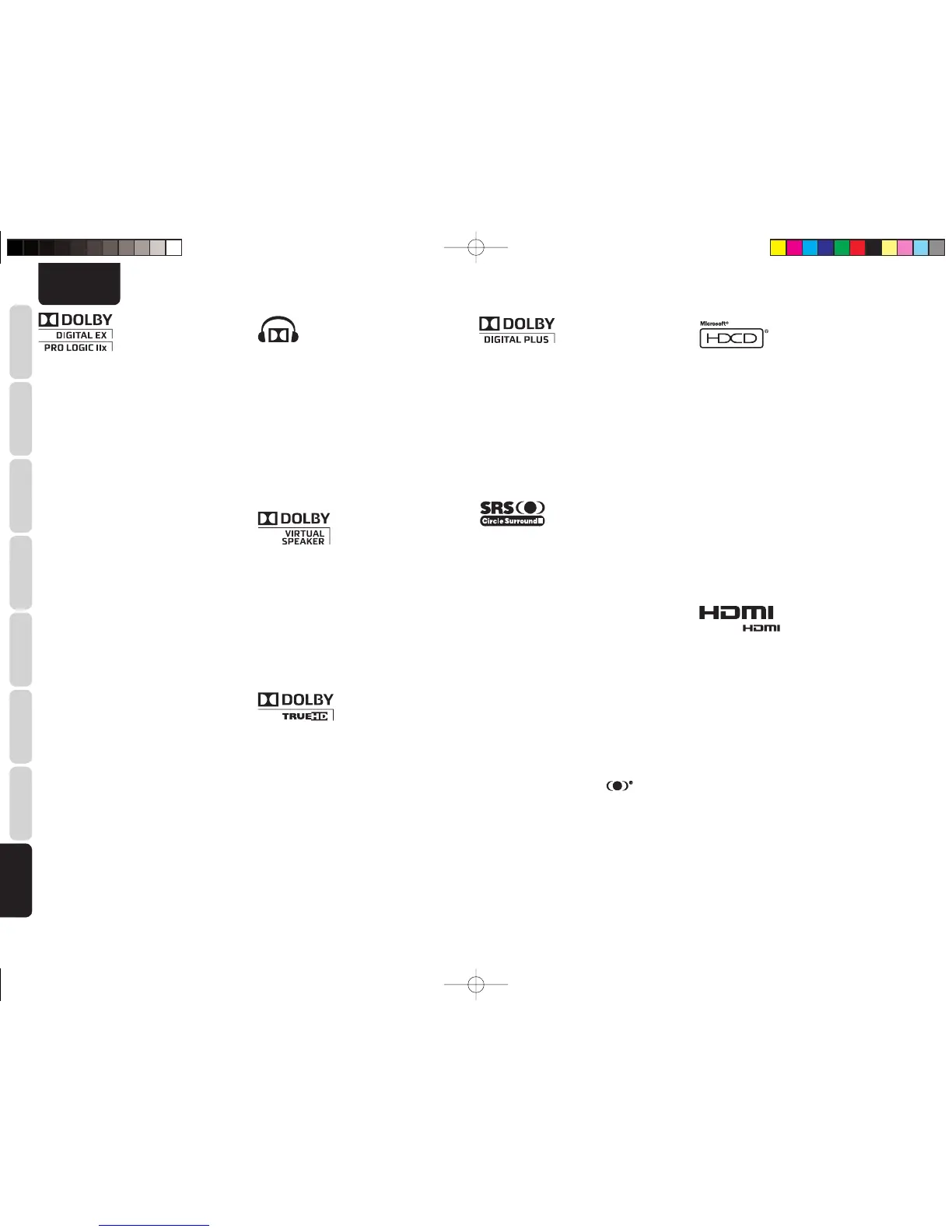 “Dolby”, “Pro Logic”, “Surround EX”, and the double-D