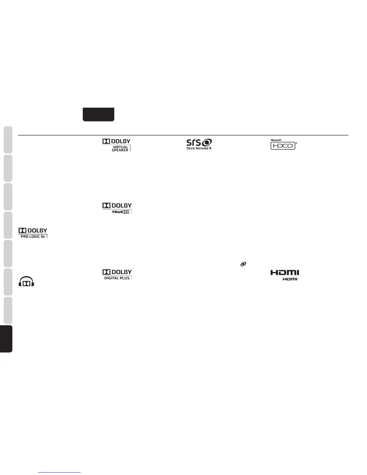 “Dolby”, “Pro Logic” “Surround EX” y el símbolo