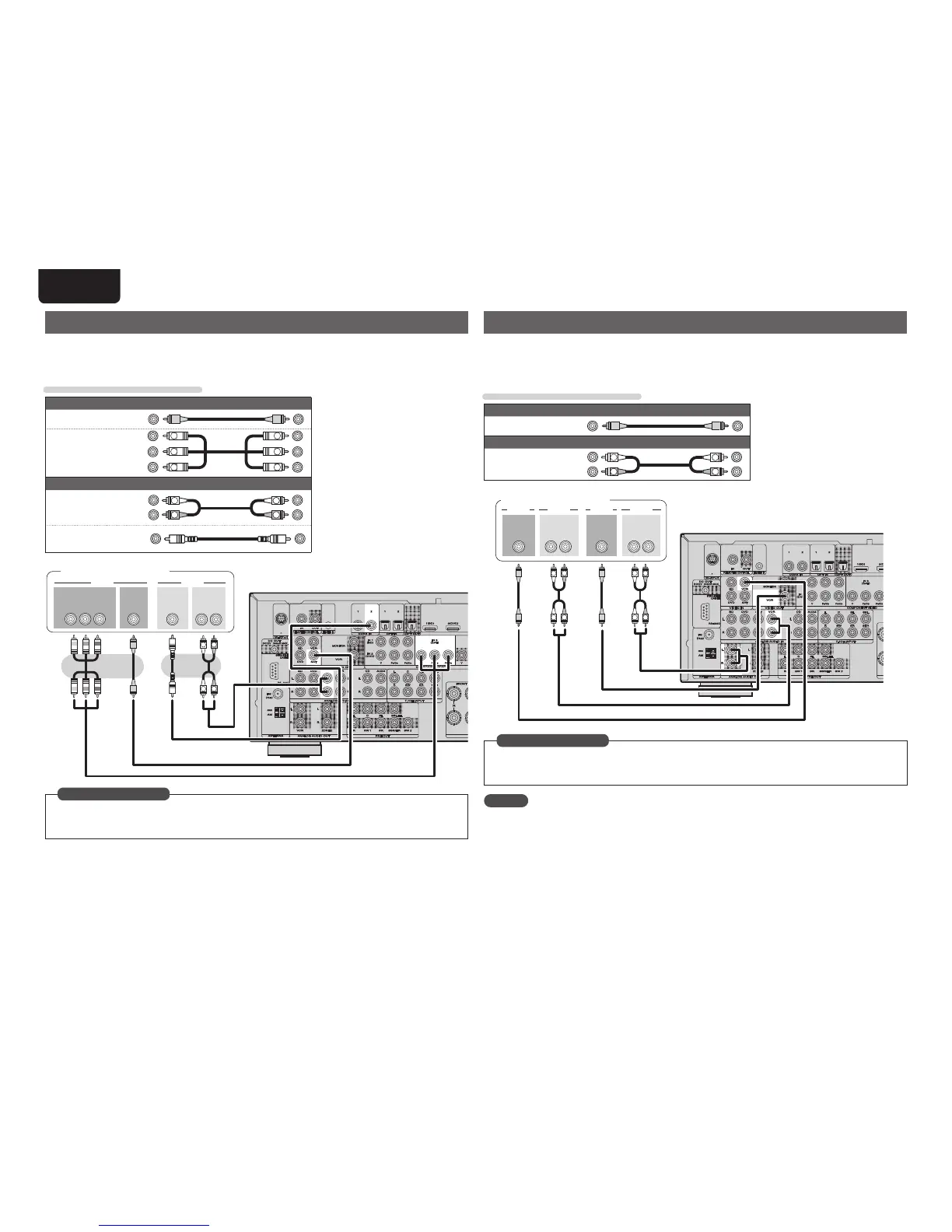 To record video signals through this unit, use the same type of video cable for connection between this