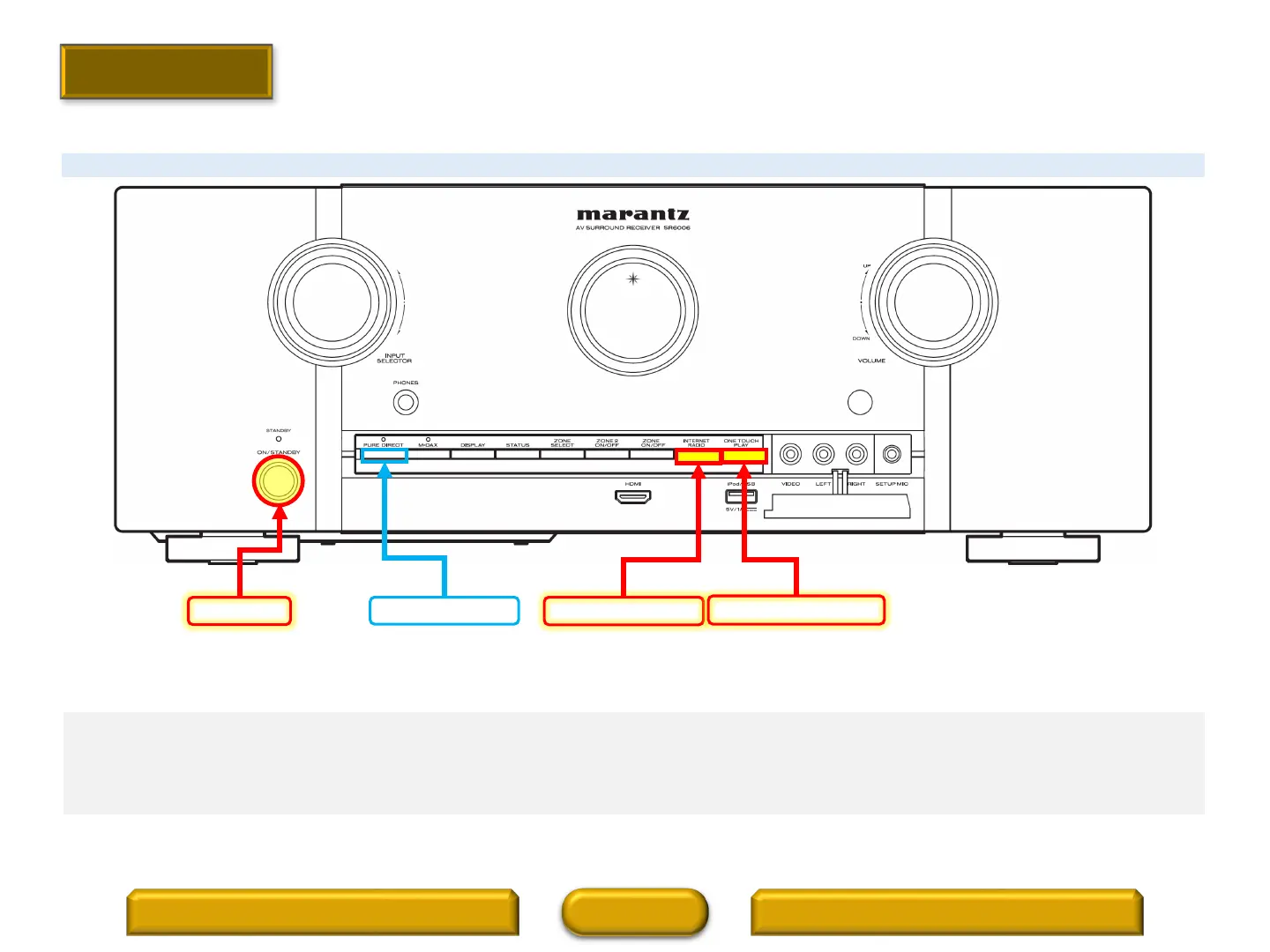 1. Press and hold the “INTERNET RADIO” and the “ONE TOUCH PLAY” buttons at the same time and press the “POWER” button