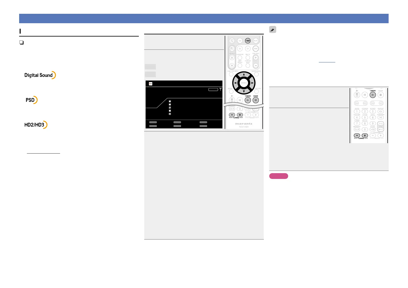 set at menu “Tuner” (vpage 118). Press uio p to return to