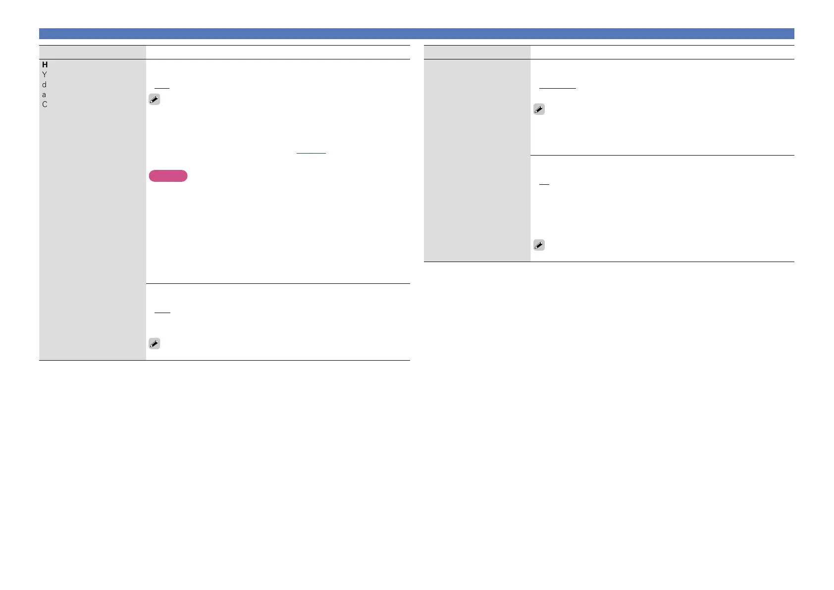 •“HDMI Control” does not work when the power to the device is off.